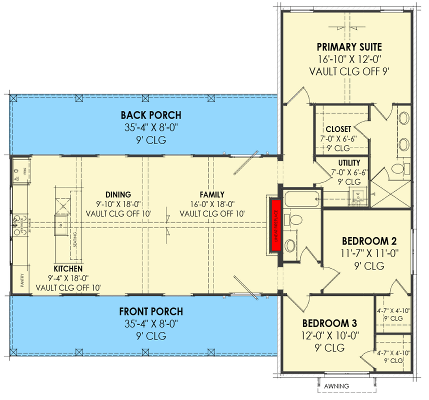 The expansive **front and rear porches (~283 sq ft each)** are standout features for this plan. These spaces serve as natural extensions of the living areas and let you enjoy fresh air for dining, morning coffee, or evening gatherings. Covering nearly 38% of the home’s interior area in additional porch space encourages outdoor living and makes this design feel larger and more versatile. 4