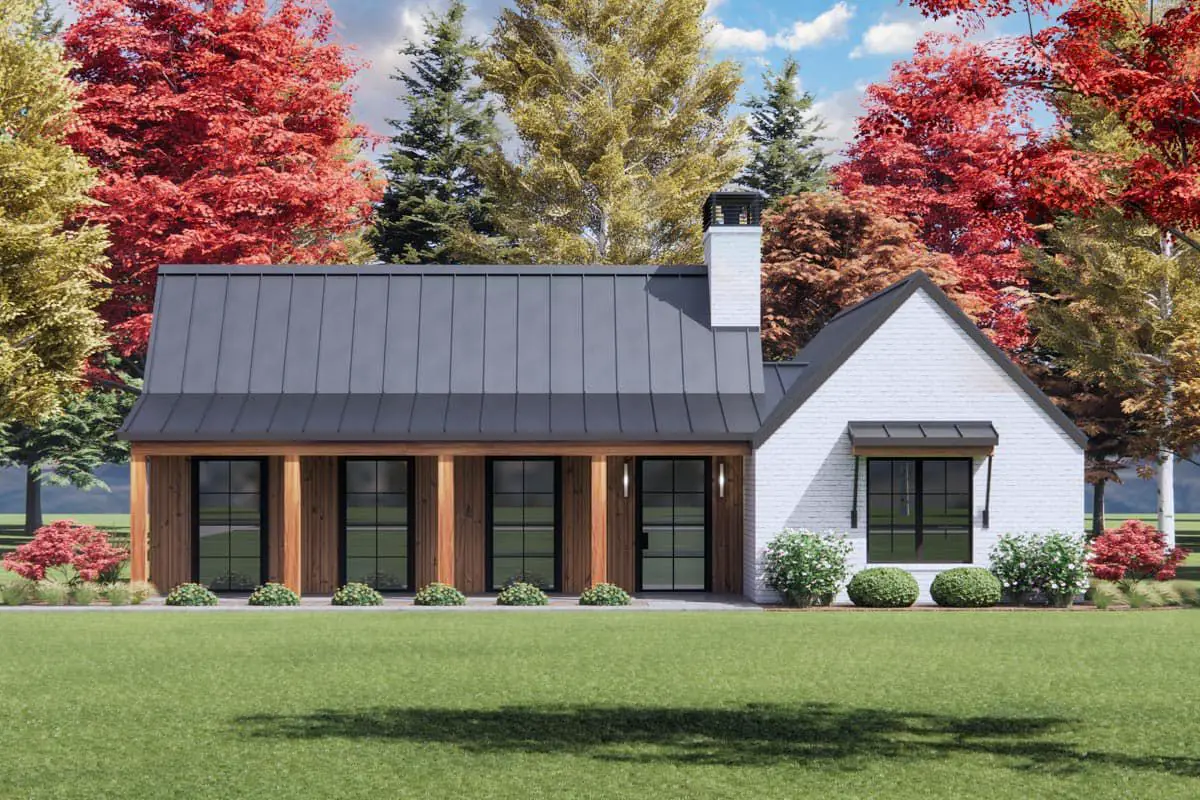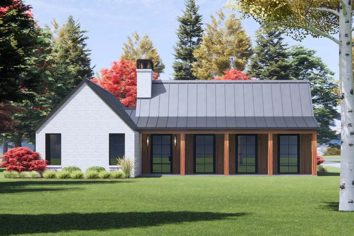 This **contemporary country house plan** combines smart design with a modest footprint.