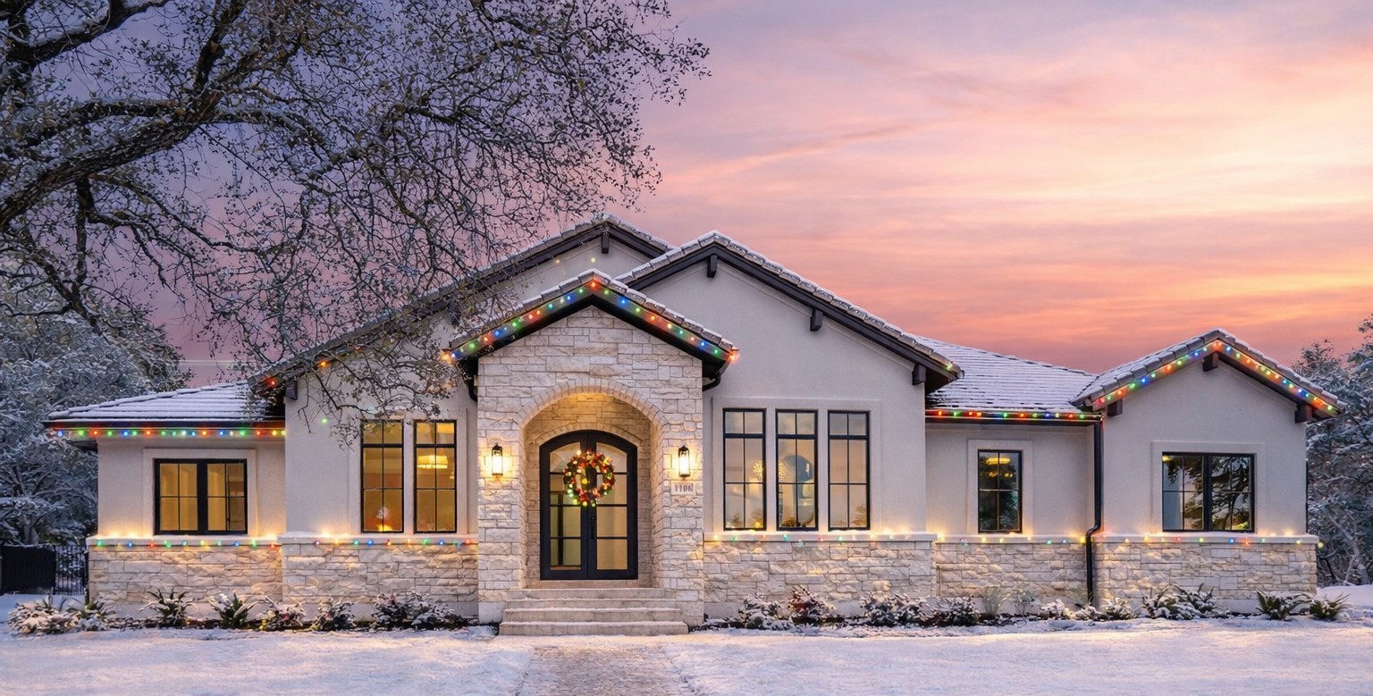 The exterior combines Hill Country charm with modern farmhouse accents, featuring welcoming covered porches, clean rooflines, and a blend of materials that create visual interest and enduring appeal.