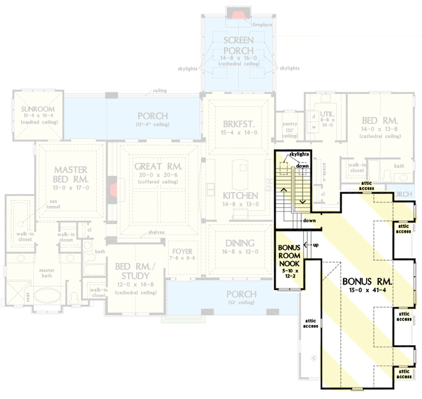 This plan supports a dynamic lifestyle, balancing entertaining and everyday living with ease. Shared spaces—like the formal dining room, breakfast nook, and screened porch—bring people together, while the split bedroom arrangement and private master sunroom create peaceful retreats. The walkout lower level adds recreation and additional bedroom space without compromising natural light or outdoor access. 23