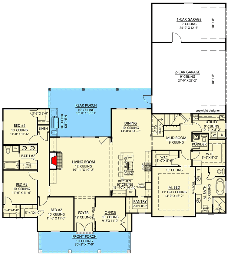 - Ceiling Heights: ~9′ main level; vaulted living spaces