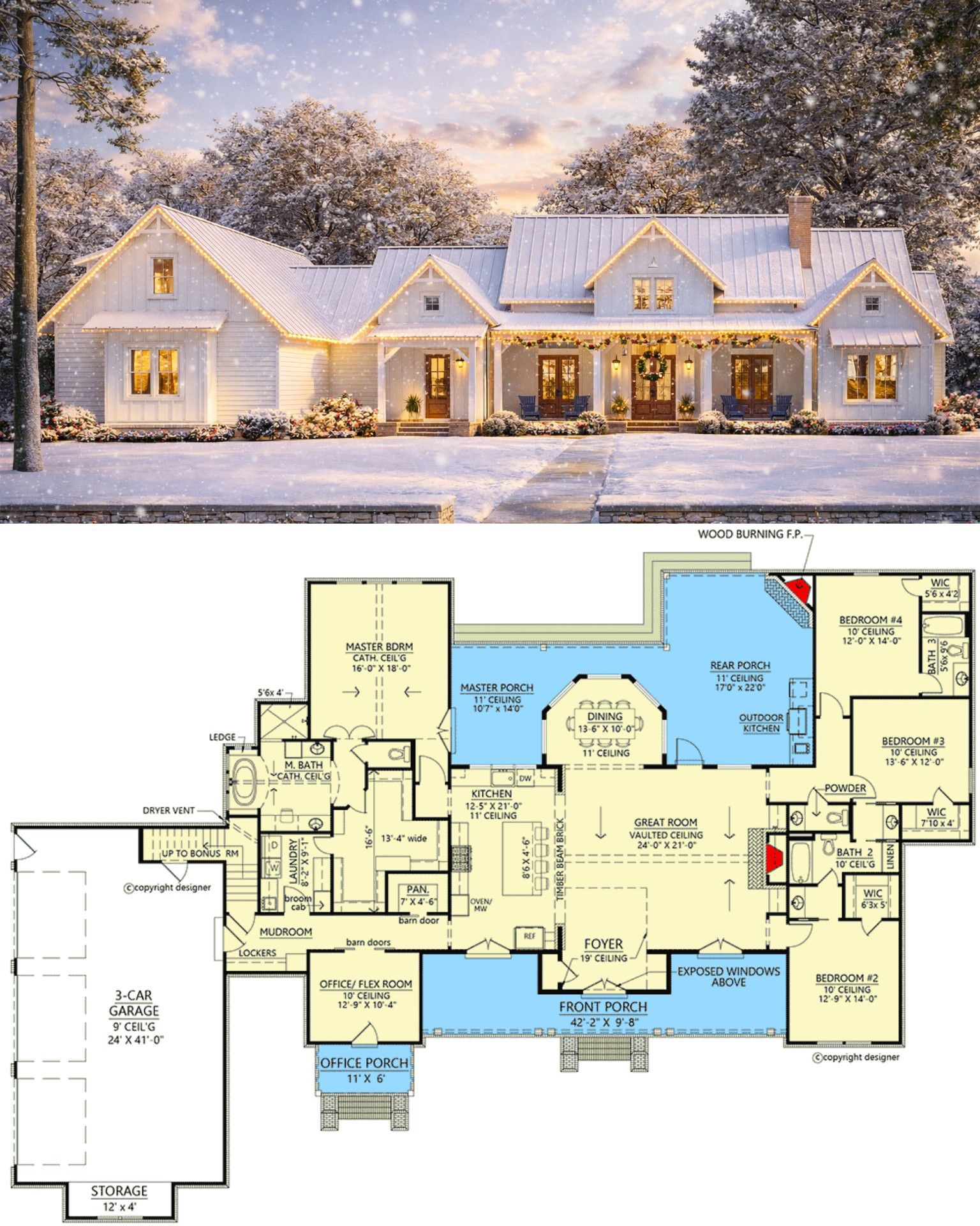 This plan is crafted for families who value spacious, connected living areas and practical private retreats. The open-concept heart of the home allows for easy entertaining and daily routines, while split bedroom zones and dedicated flex spaces such as a home office and bonus room adapt to lifestyle needs. Large porch spaces enhance outdoor living and bring classic farmhouse charm into everyday life. 23