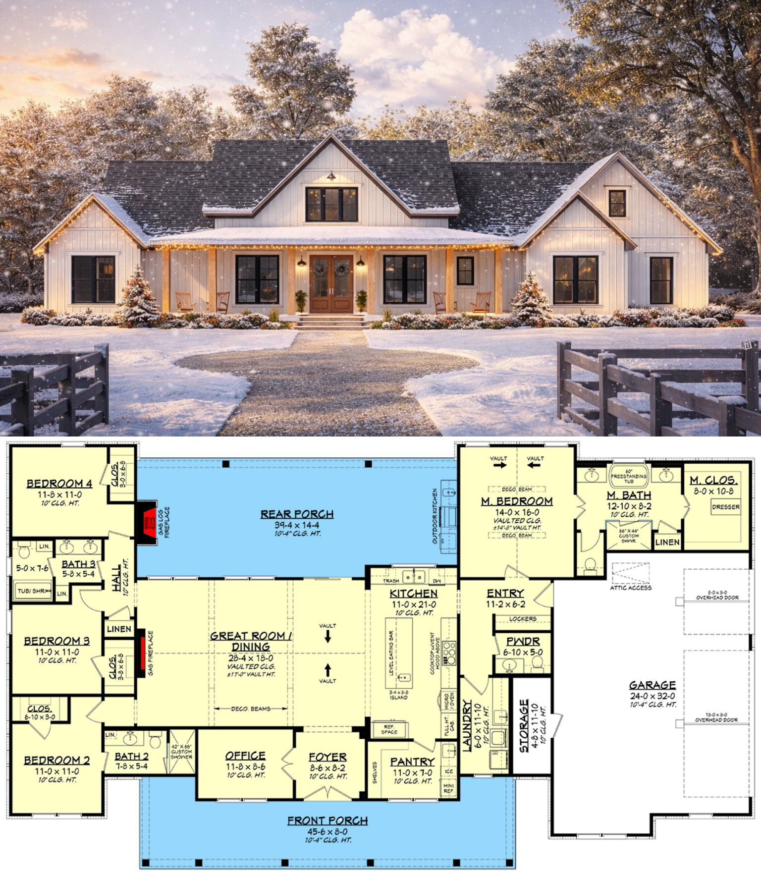 If you want a home that feels bright and open, lives comfortably on one level, and gives you outdoor space that people actually use, this modern farmhouse is the kind of layout that fits real life—and makes it look good too.