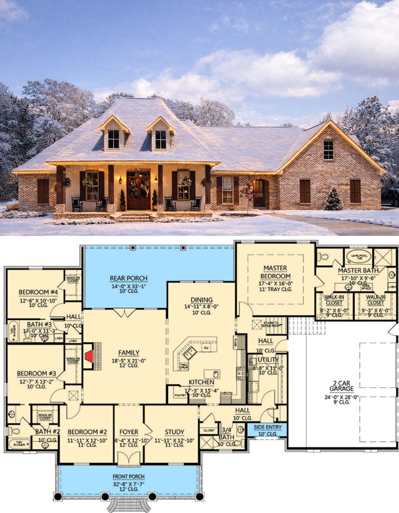 This French Country plan emphasizes a natural flow between spaces—both indoors and out. The open gathering areas support interaction, while private bedroom zones and separate study offer flexibility and comfort for daily living. The bonus room provides future flexibility, making this plan adaptable as your family’s needs change. 16