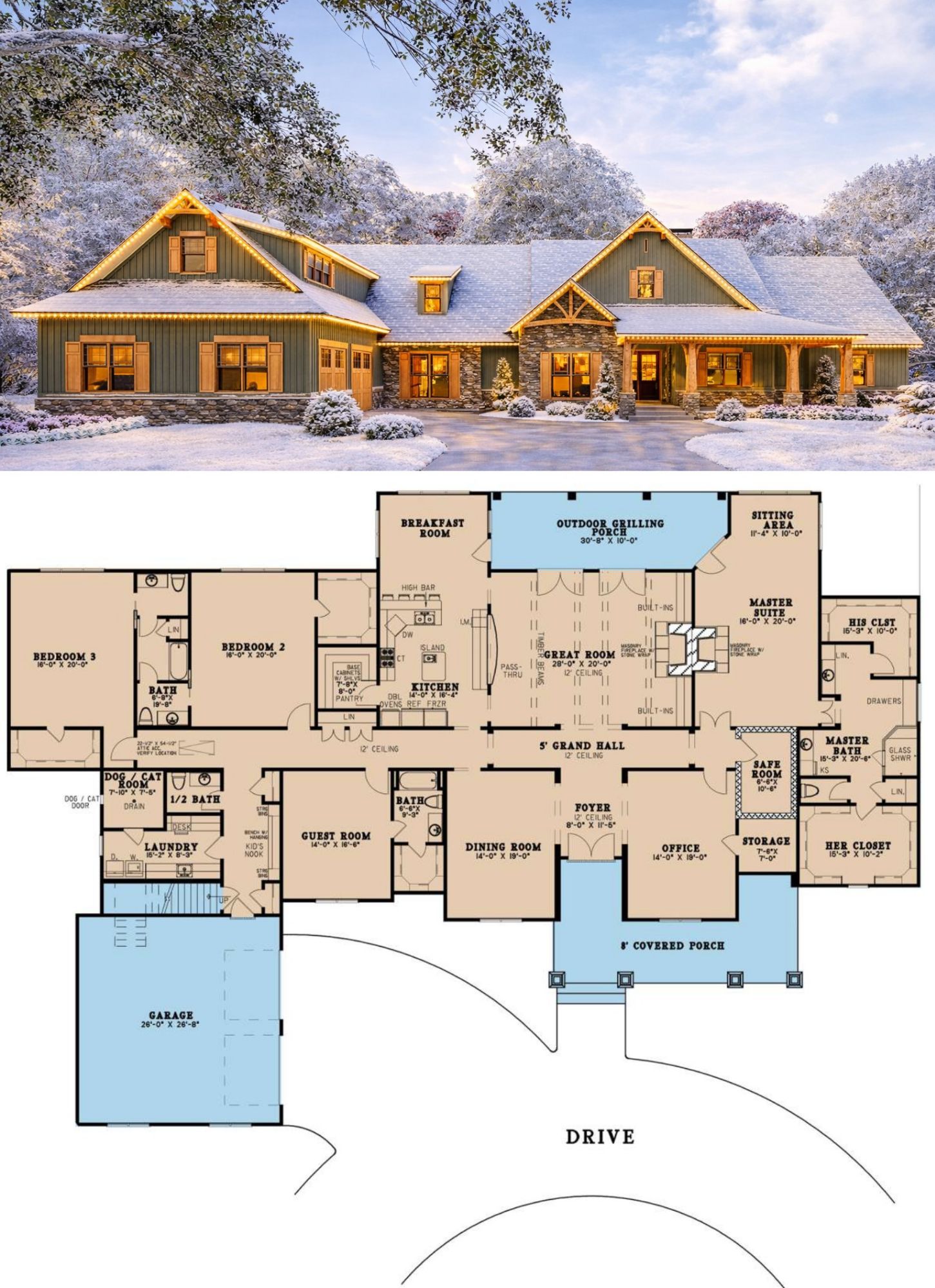 If you’ve been hunting for a big, beautiful one-level home that feels equal parts “weekend retreat” and “forever home,” this country-style design checks a lot of boxes without trying too hard.