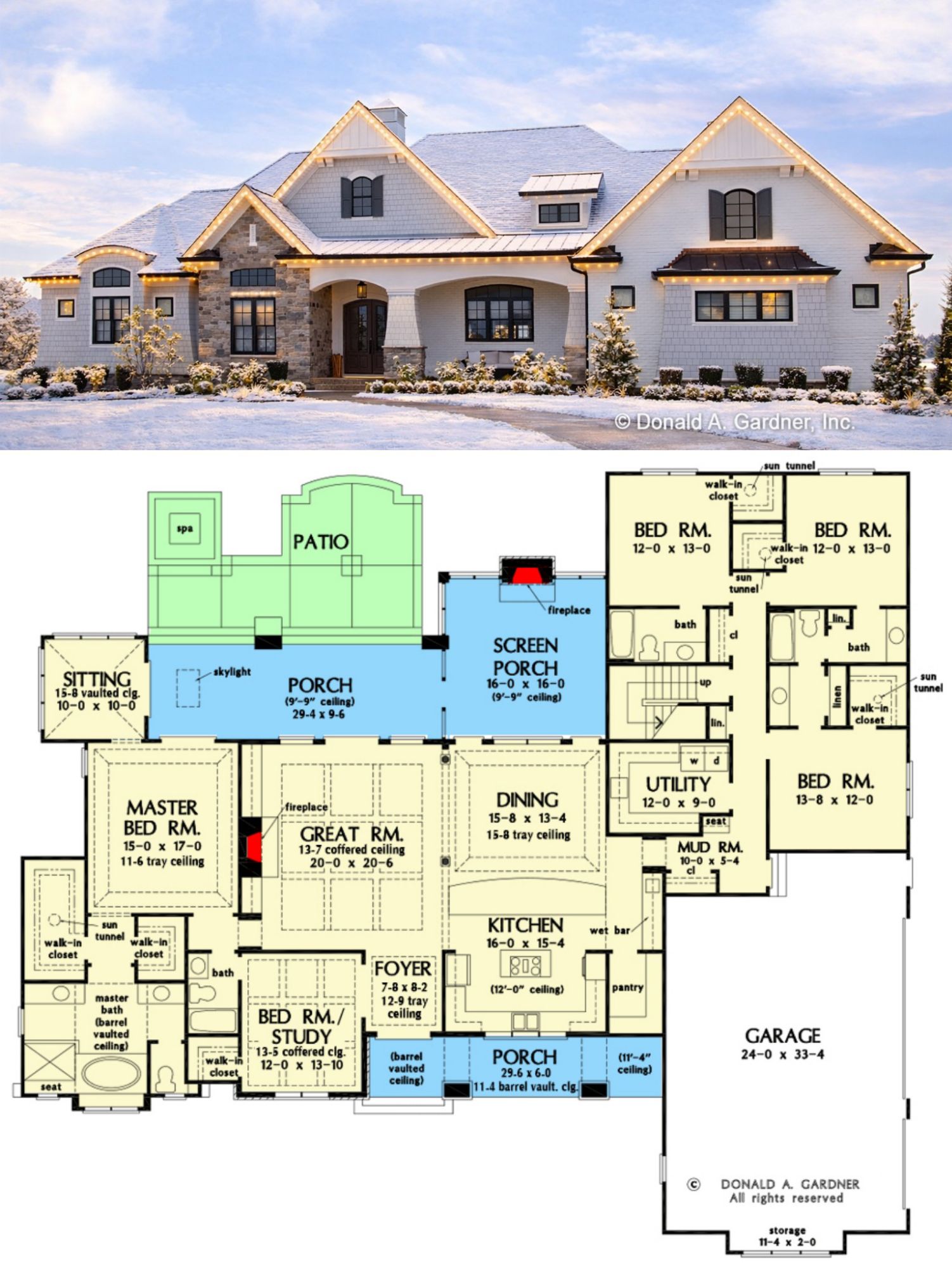 - Total Heated Area: ~3,360 sq ft