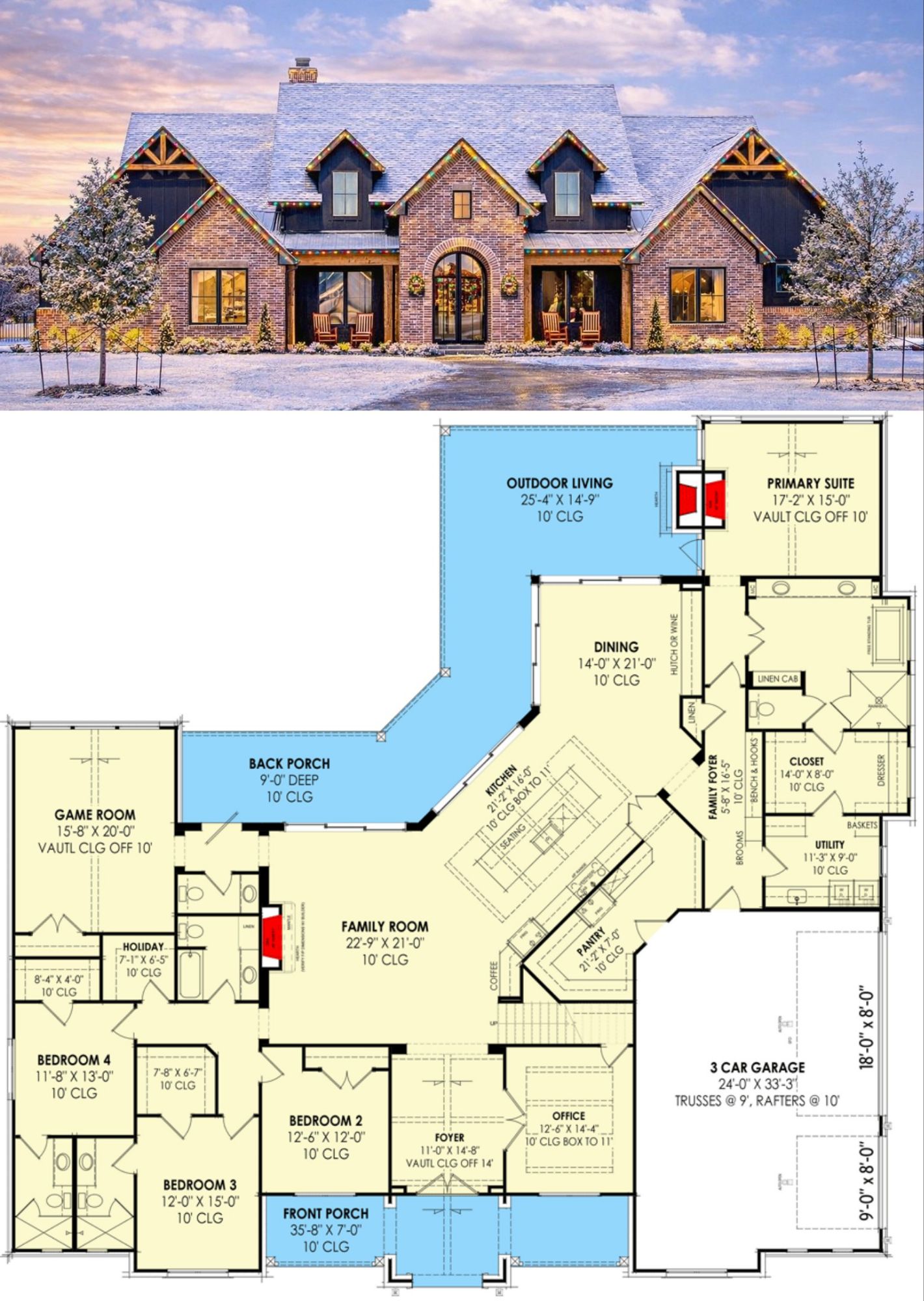 This plan is designed for a balanced lifestyle: open family zones for gathering and indoor-outdoor connectivity, private wings for rest, and enough flexible spaces (office, game room, bonus room) to support hobbies, work, and play. Thoughtful touches like the **master closet’s direct laundry access** and cluster bedrooms with their own recreation space make daily living more efficient and enjoyable. 20