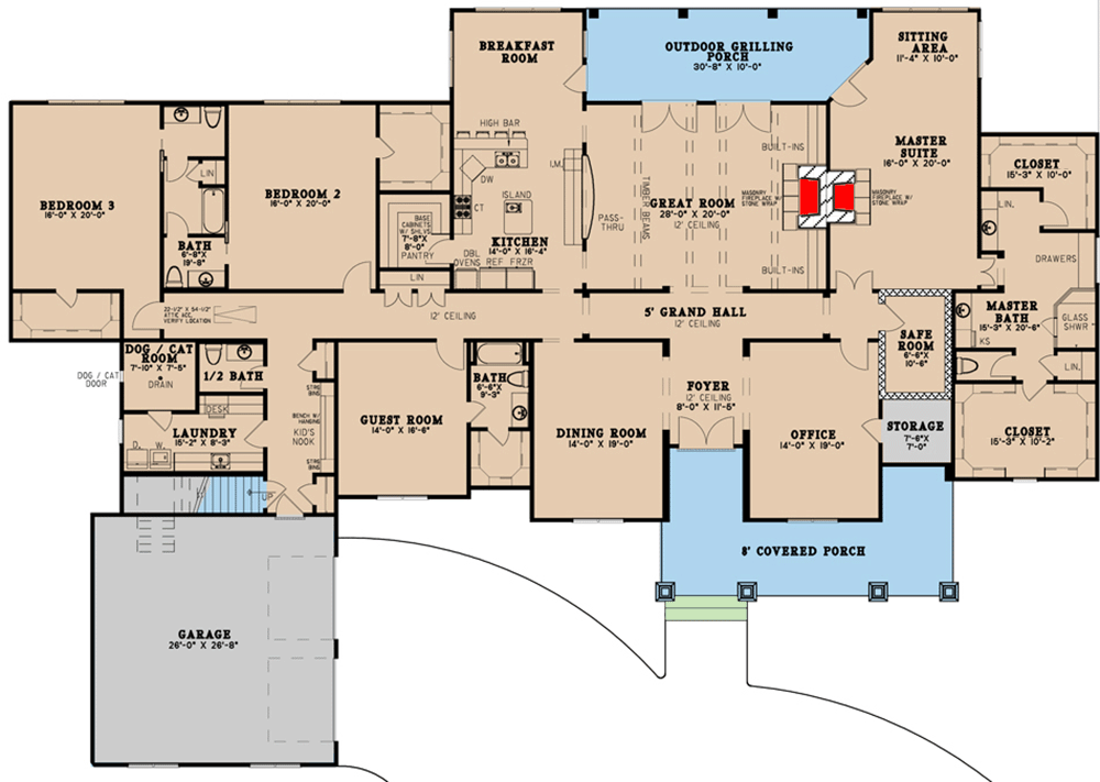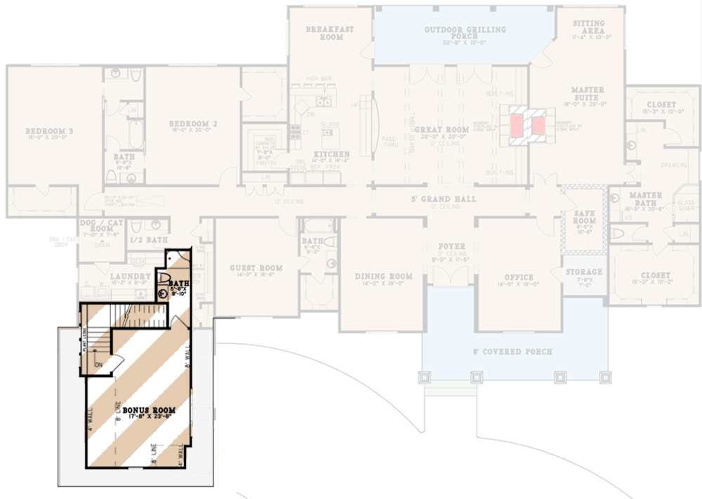 This Craftsman plan is built for both entertaining and everyday family life. The open main living areas connect seamlessly to covered outdoor spaces, while the layout’s split bedroom arrangement provides privacy. The dedicated bonus room and pet care space add thoughtful touches that elevate daily living. 19