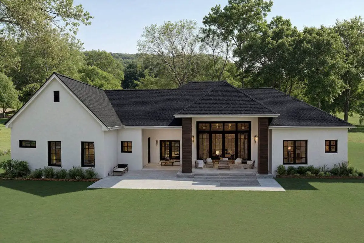 The exterior combines country warmth with transitional styling, featuring clean lines, a welcoming covered front porch, and balanced architectural detailing that suits a variety of landscapes—from traditional neighborhoods to rural settings. 1