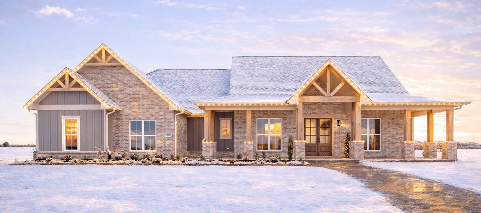From the curb, the modern farmhouse vibe is strong: balanced proportions, a confident roofline, and that warm “come on in” look that never goes out of style.
