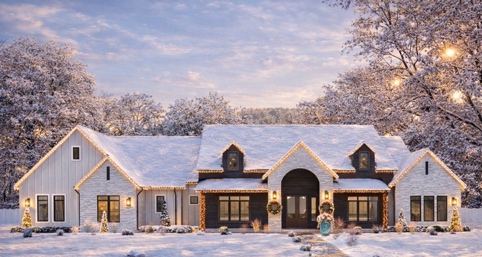 The exterior mixes board and batten, clapboard, and brick for a warm yet refined façade. A generous **front porch (~300 sq ft)** creates inviting curb appeal, while rear outdoor spaces extend your living area into the landscape. 1