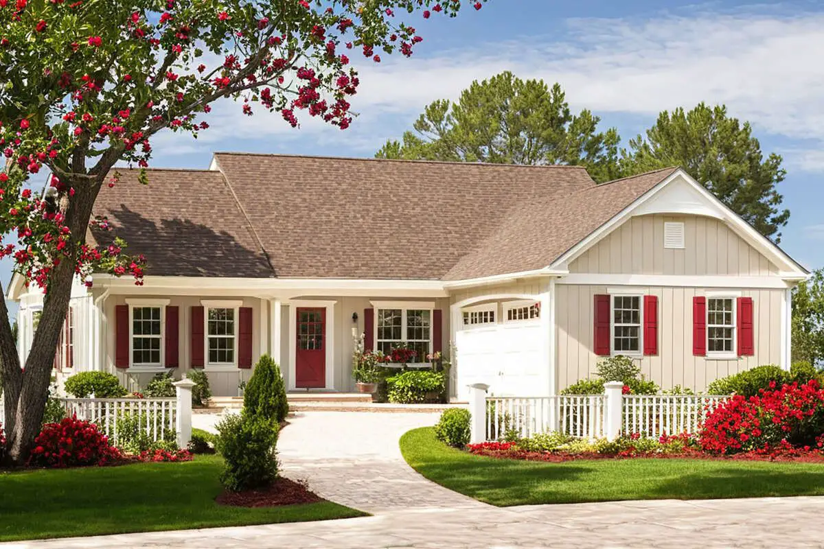 This home’s curb appeal leans into cozy cottage charm with a friendly, approachable front elevation. The footprint measures about 49′ 6″ wide by 52′ 11″ deep, and the height comes in around 22′ 4″. That means it looks substantial without feeling tall or imposing—more “welcome home” and less “did we just buy a hotel?”