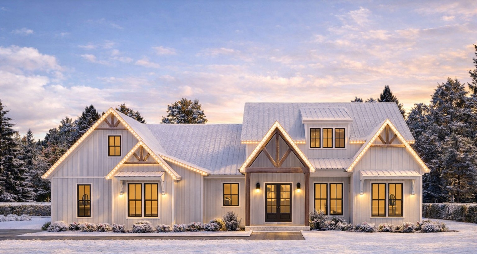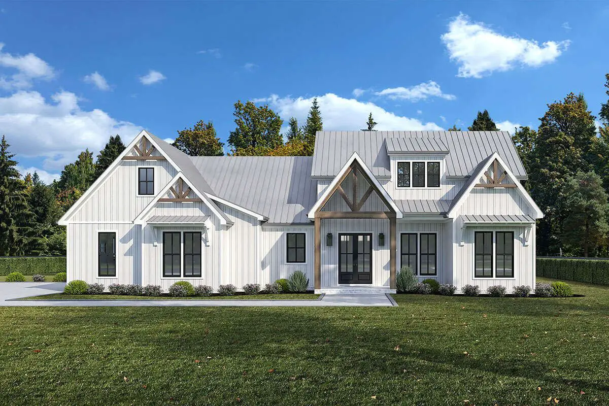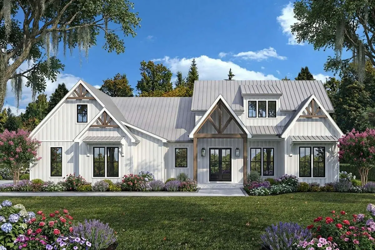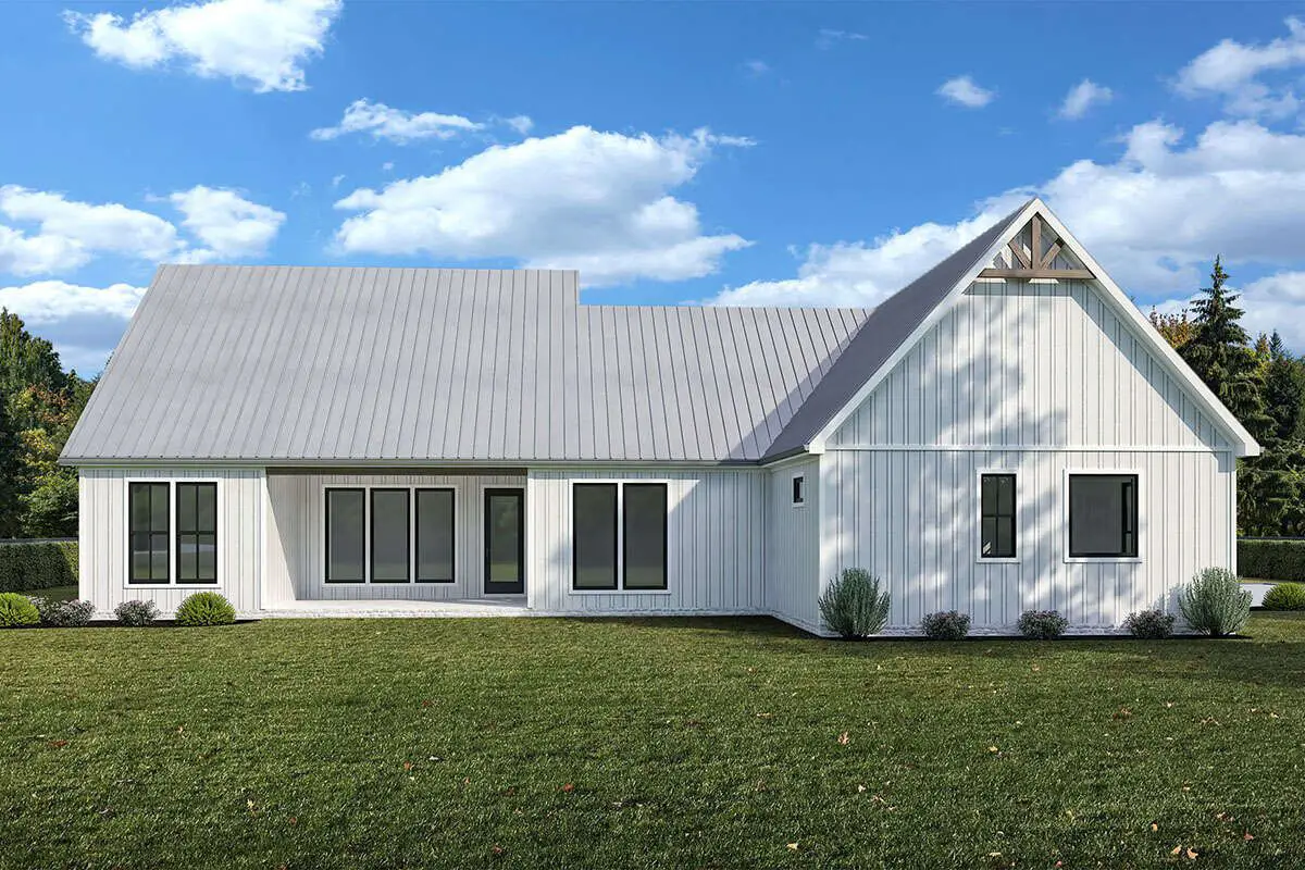 Typical U.S. construction costs for a home of this size and design generally range from about **$200–$340 per square foot**, depending on region, labor, finishes, and site conditions. For approximately 1,800 sq ft of conditioned space in a modern farmhouse style, a rough estimated build cost would be around **$360,000–$612,000 USD**, excluding land, permits, utilities, and site preparation. (Industry general guidance.) 25