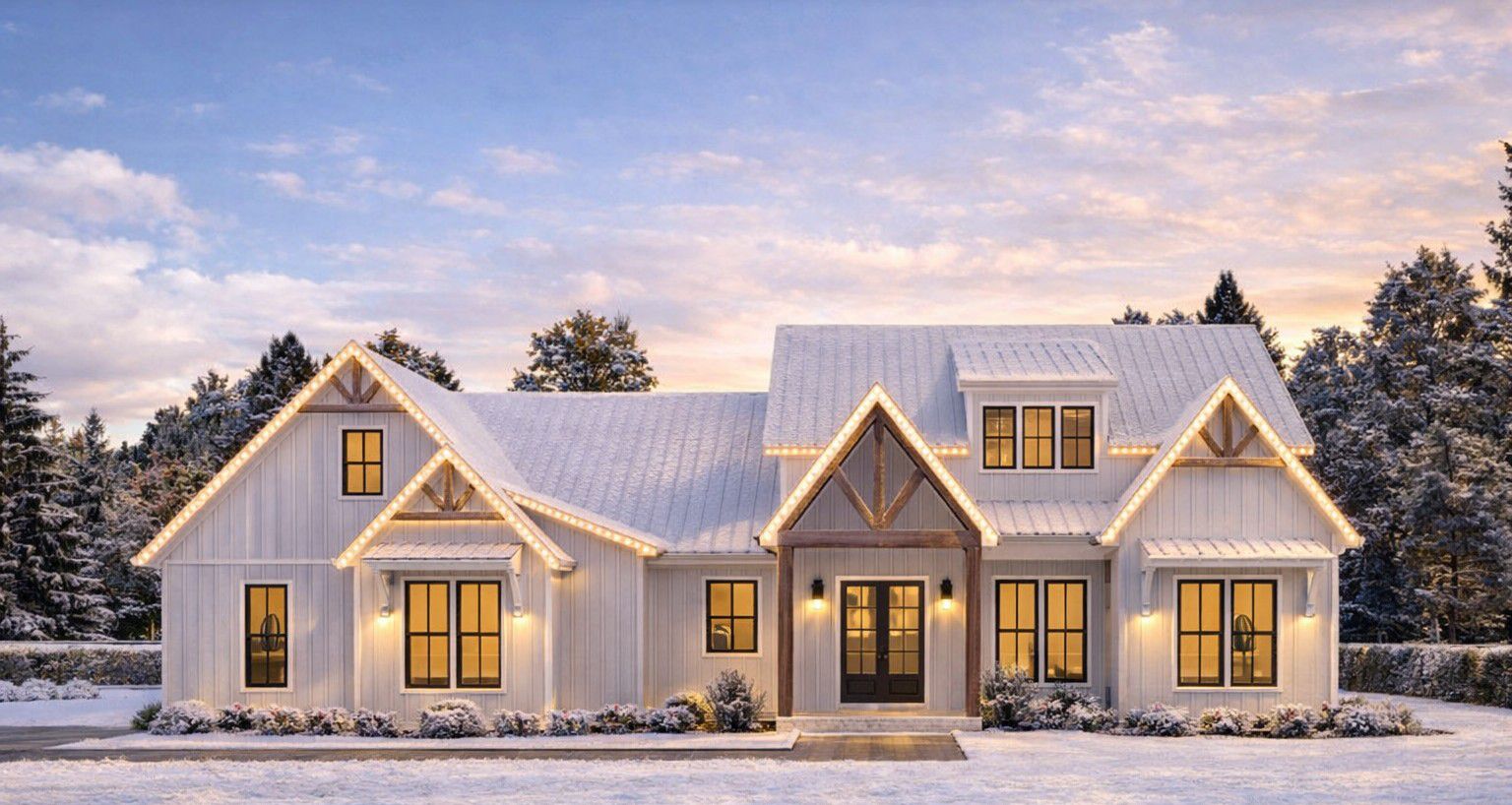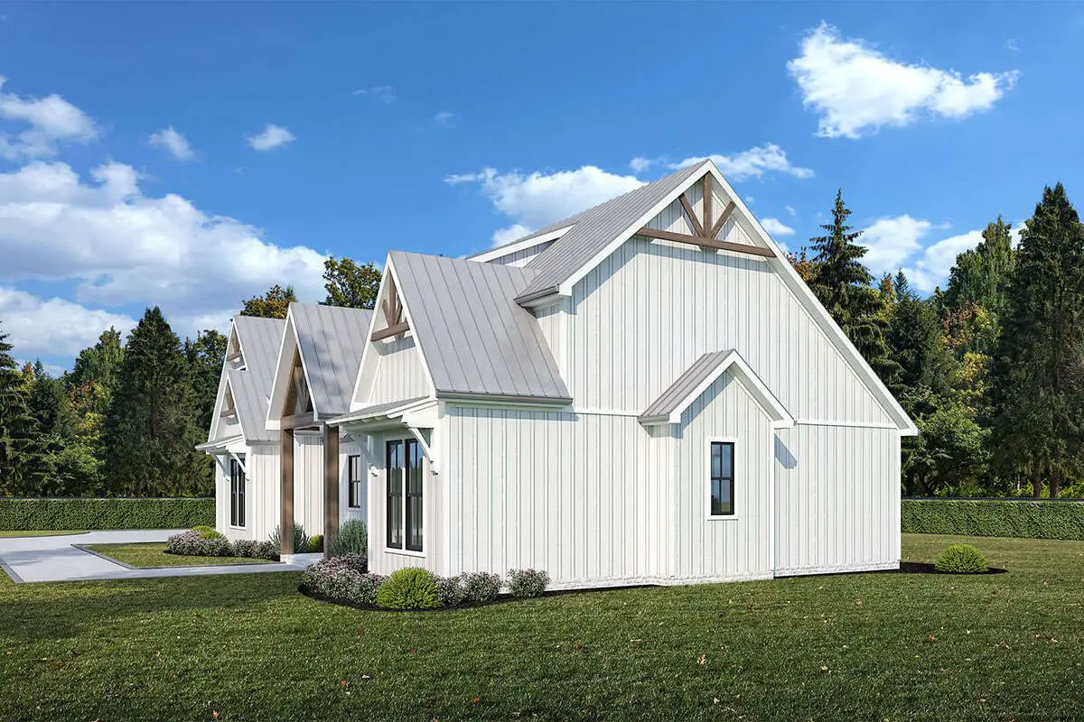 The roof has a classic pitch that enhances the profile, while the siding and architectural details keep the farmhouse aesthetic fresh and stylish. 2