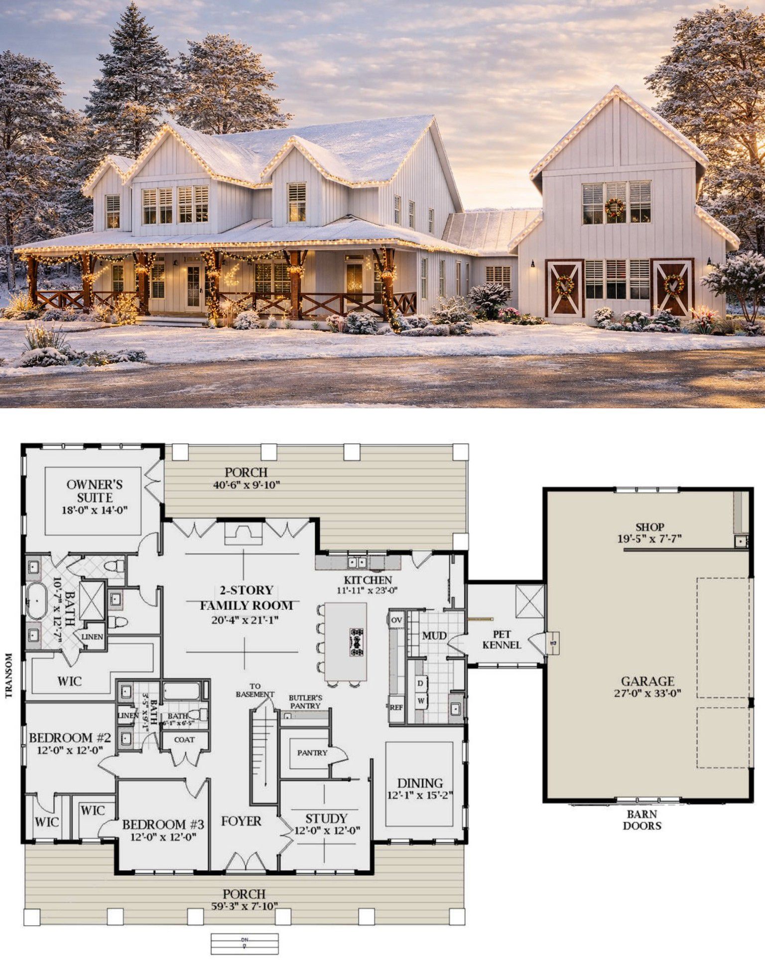 This plan suits families who want generous space, classic farmhouse aesthetics, and a smartly organized layout for comfortable living in both everyday rhythms and special gatherings. 24