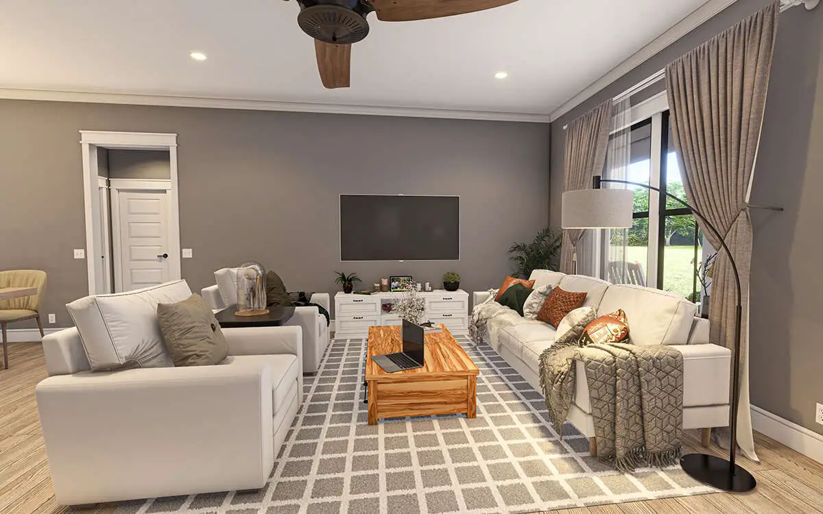 This one-story modern farmhouse sits firmly in the second category. With 3,095 square feet of heated living space, 4–5 bedrooms, and 4 bathrooms total (that’s 3 full plus 2 half baths), it’s designed for big-family comfort, frequent guests, and the kind of entertaining that spills outside without anyone feeling crowded.