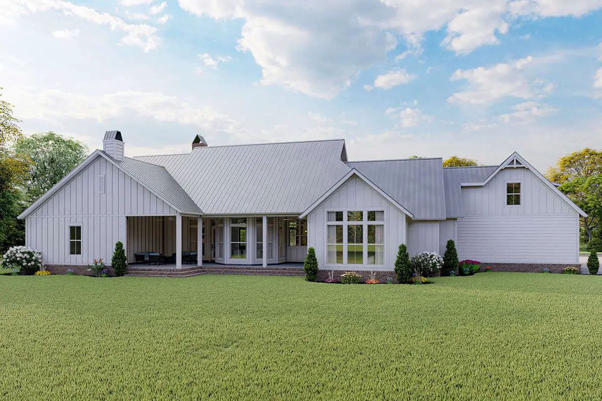 If you want one-story comfort with showpiece outdoor living, smart bedroom privacy, and plenty of room for both people and plans, this modern farmhouse checks a lot of boxes—without feeling like it’s trying too hard.