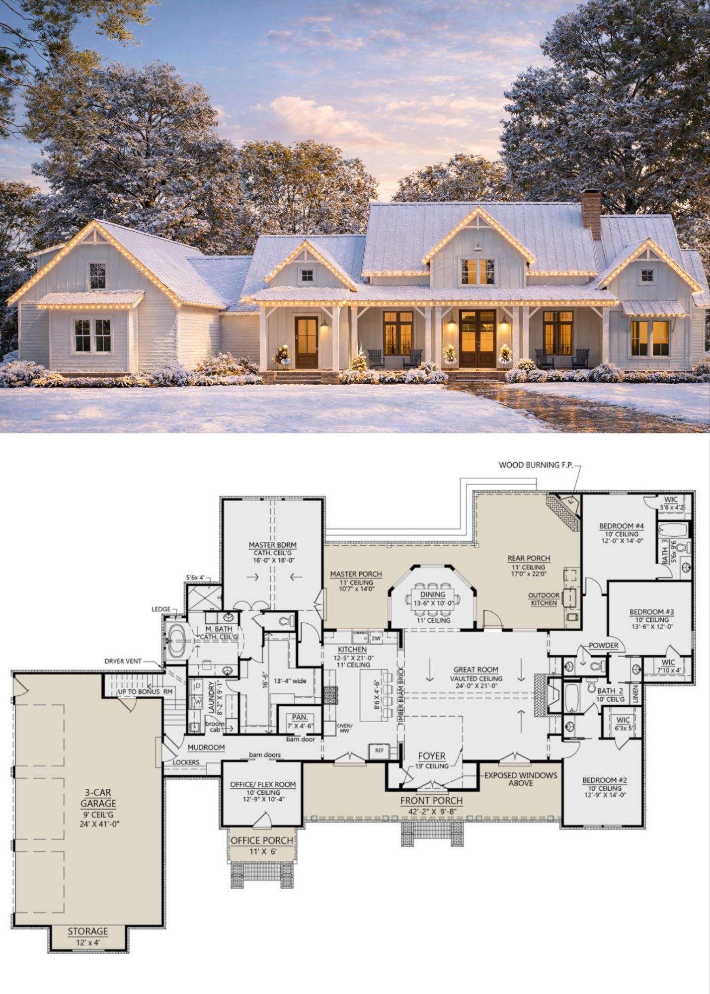 - Key Features: open floor plan, kitchen island, split bedrooms, Jack-and-Jill bath, office/flex room, mudroom, main-floor laundry, front & rear porches, outdoor kitchen potential, rear fireplace