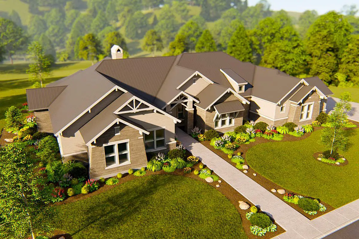 This expansive **one-story Craftsman home plan** blends timeless style with a layout built for everyday living, entertaining, and flexible family spaces.