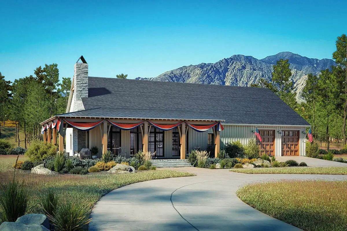 This design is made for people who want a home that’s comfortable, flexible, and easy to live in. The open main area supports gatherings and everyday connection. The vaulted ceiling adds a little drama (the good kind). The wraparound porch gives you outdoor living space that actually gets used.