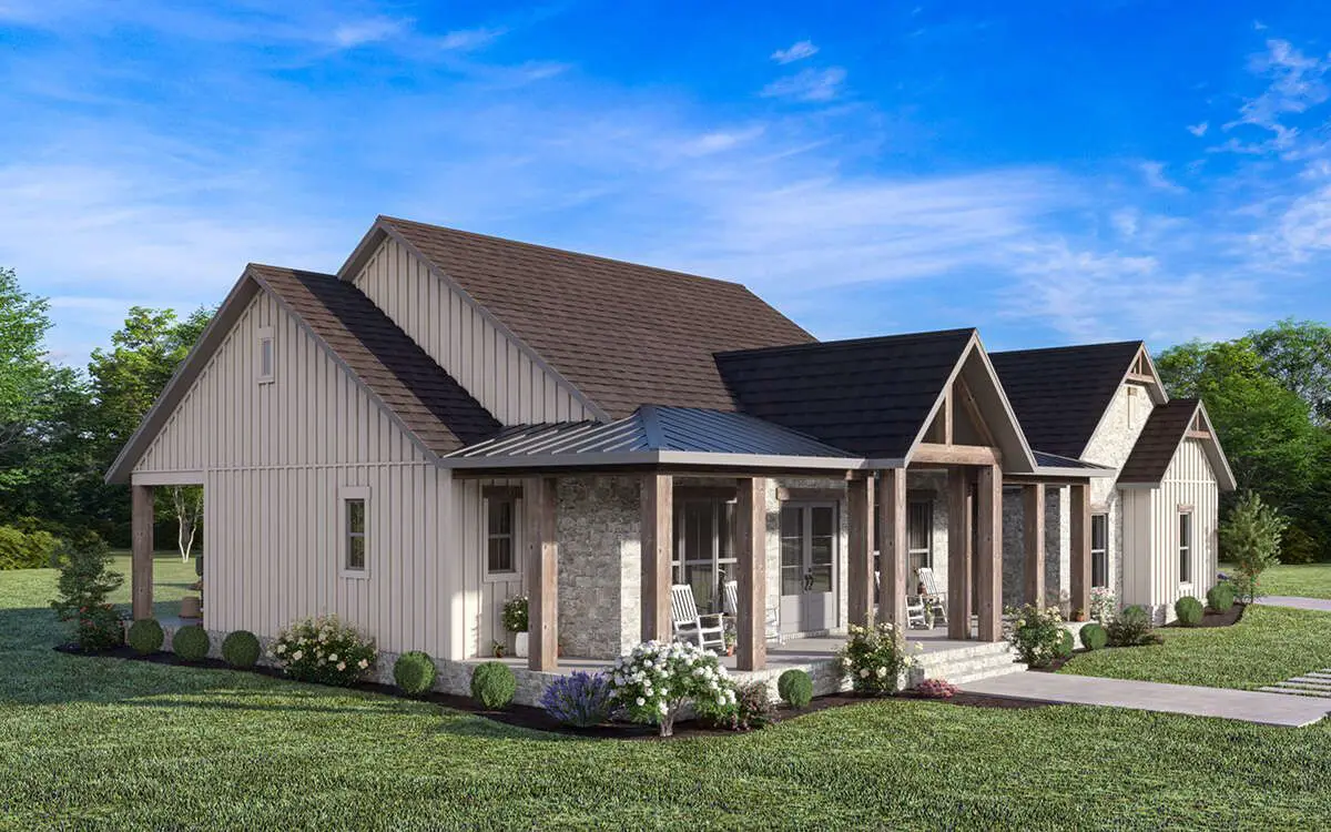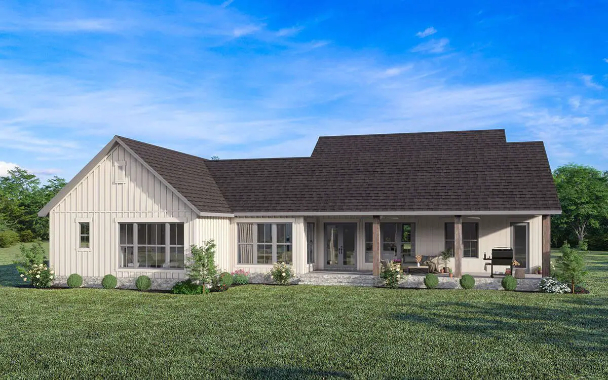 Durable lines, balanced proportions, and welcoming porches give this farmhouse warm curb appeal and a relaxed, everyday presence. Both front and rear porch areas provide inviting transitions between indoor and outdoor spaces, perfect for morning coffee or evening gatherings. 1