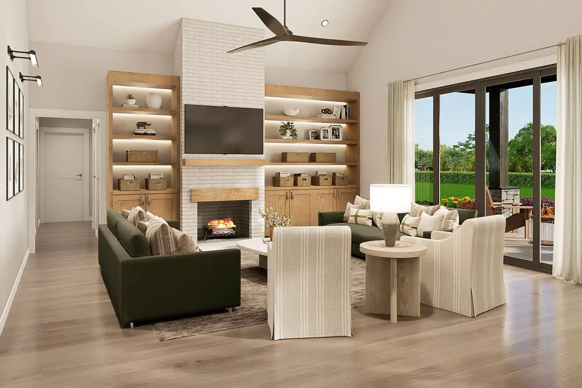 This open design encourages connection across living zones—perfect for daily routines, family time, and entertaining. Large windows allow natural light to fill the interior and help blur the lines between indoor and outdoor living. 3