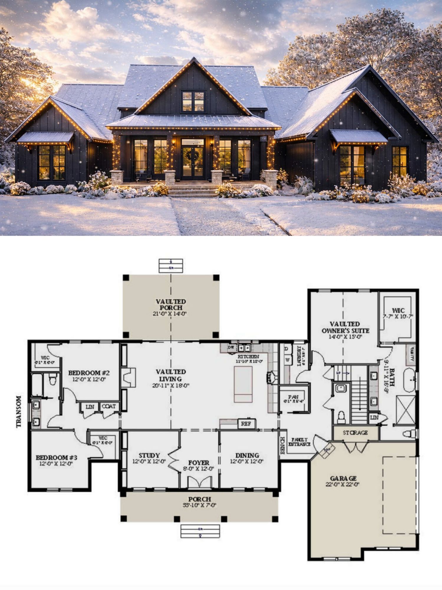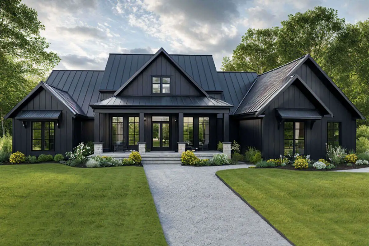The exterior combines classic farmhouse charm with modern simplicity. Clean lines, a balanced roofline, and thoughtfully placed windows create a timeless façade that works beautifully in both rural and suburban settings.
