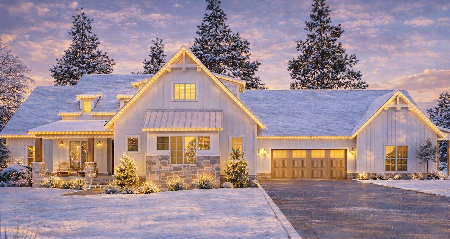 The exterior of this modern farmhouse blends classic farmhouse charm with contemporary detailing. Clean lines, a mix of siding materials, and well-proportioned rooflines make the design feel timeless yet fresh.