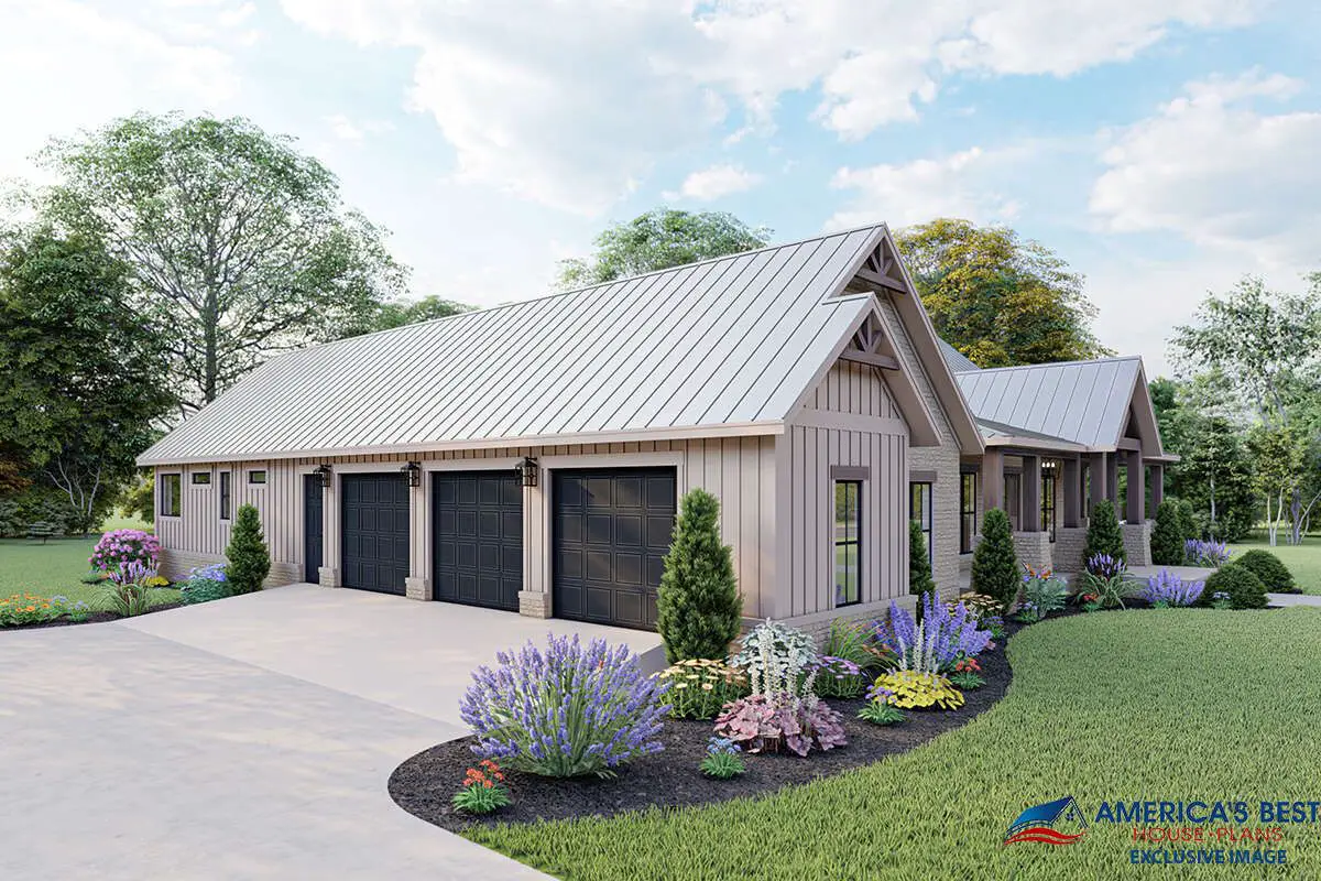It also includes a 3-car side-entry garage, so you get the storage and parking you want without letting the garage steal the spotlight from the front elevation.