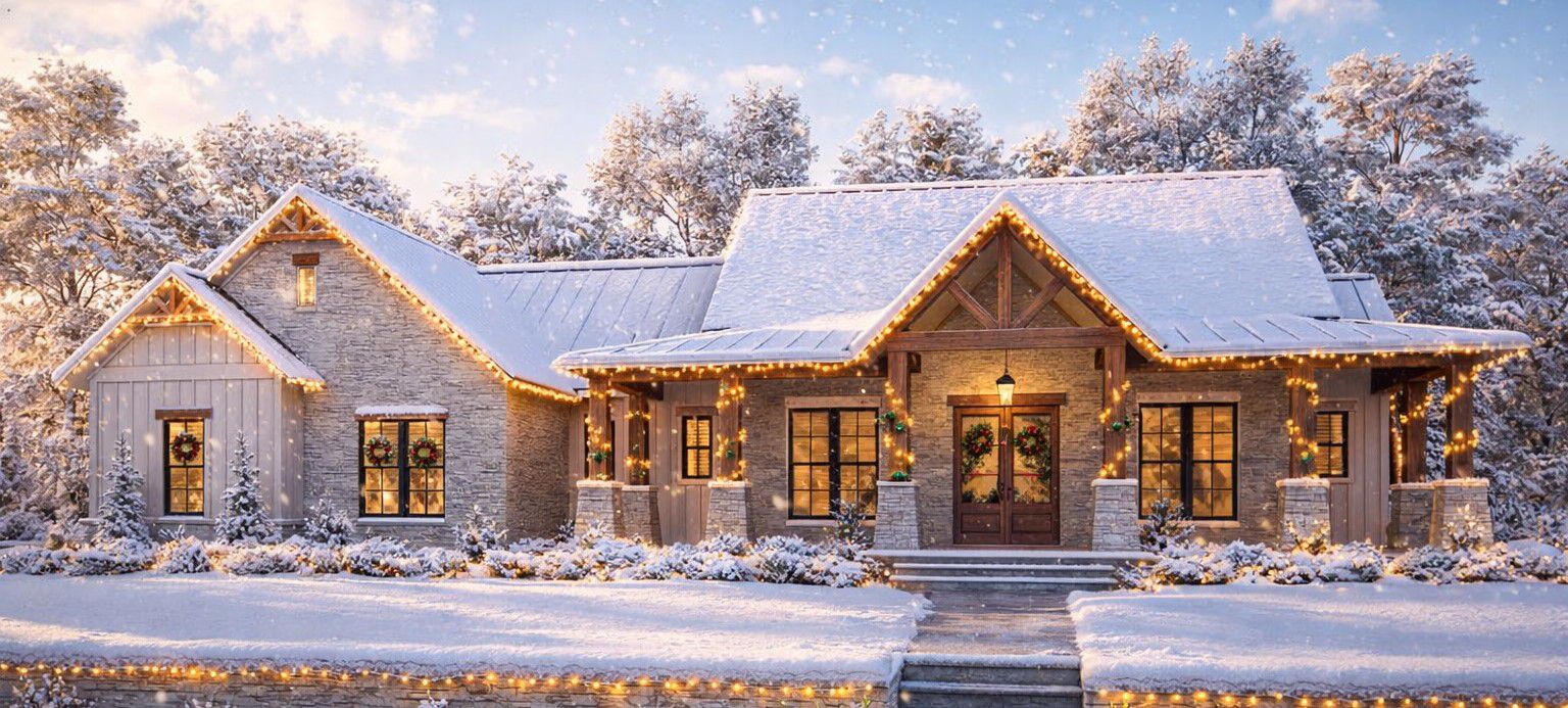 Right away, the exterior sets the tone: rustic farmhouse vibes with a clean, modern confidence. Picture lightly toned brick, natural timber accents, and gables that give the roofline that classic farmhouse rhythm.