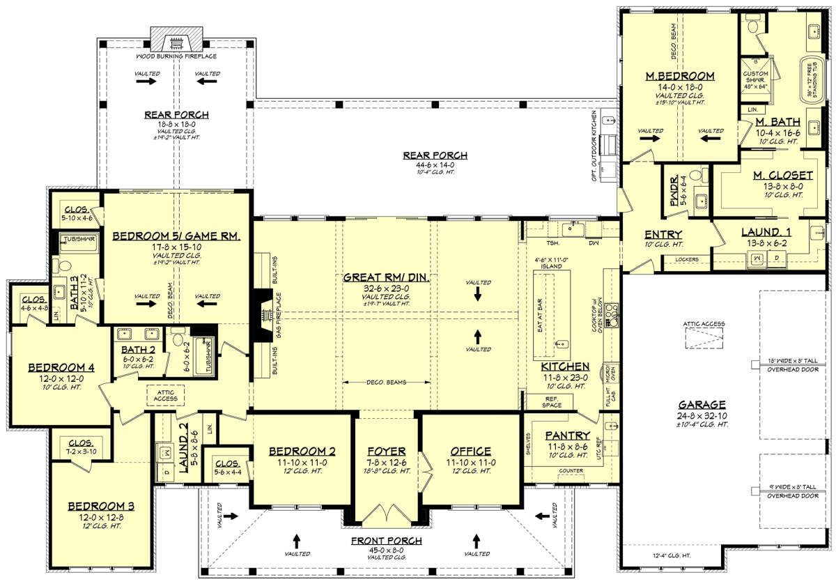 All 3,500 sq ft of heated living space sits on the main level, and the ceilings are tall too—about 10 feet—which makes the whole home feel even more open and airy.
