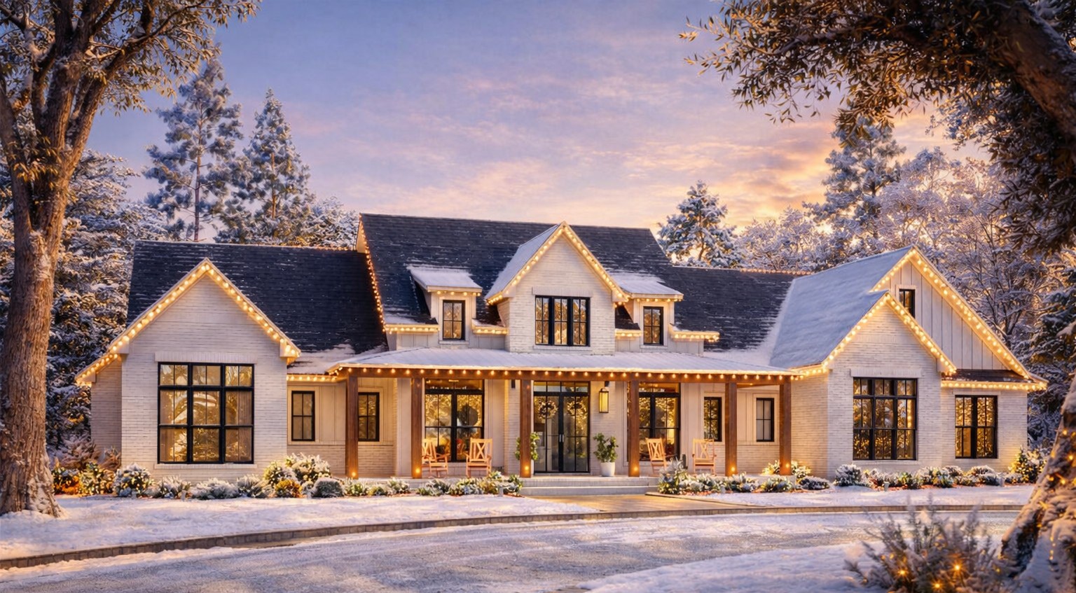 The overall size is substantial, measuring about 99′ 6″ wide by 68′ 8″ deep, with an overall height around 30′. In other words: it’s wide enough to look like an estate, but still designed with the warmth and charm that makes a farmhouse feel welcoming.