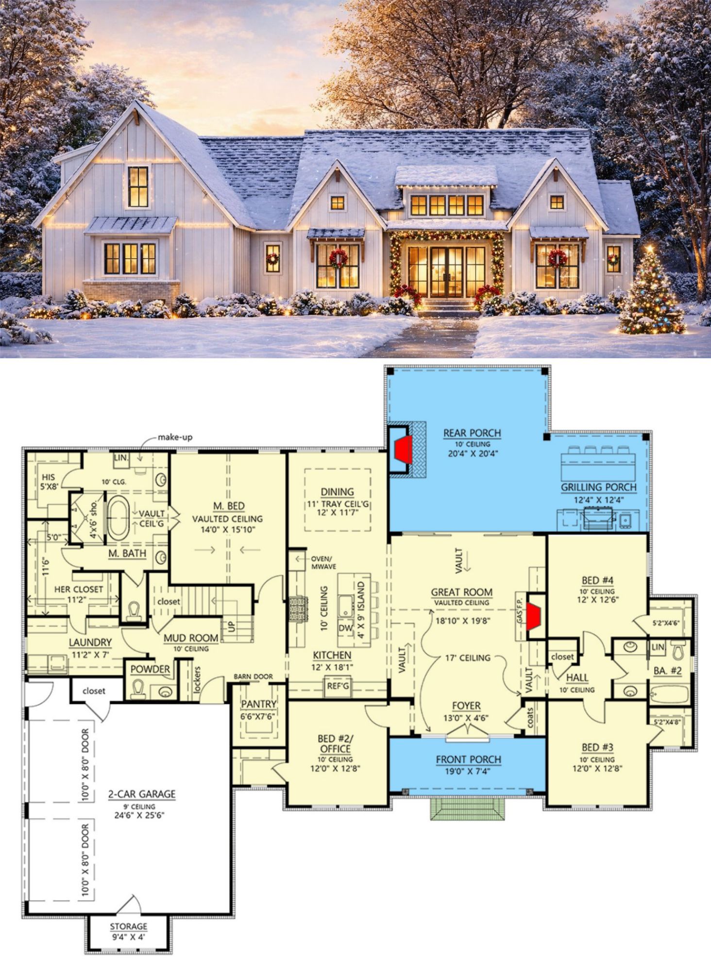 This modern farmhouse plan is designed for families who appreciate a thoughtful balance of shared open space and private sleeping areas. The main living area invites interaction, while the bedroom zones help support rest and personal space. The optionally finished bonus room provides a flexible retreat or functional workspace that can evolve with your needs. Outdoor living spaces enhance daily life by offering room for fresh air, handling gatherings, and extending your home’s livable footprint.