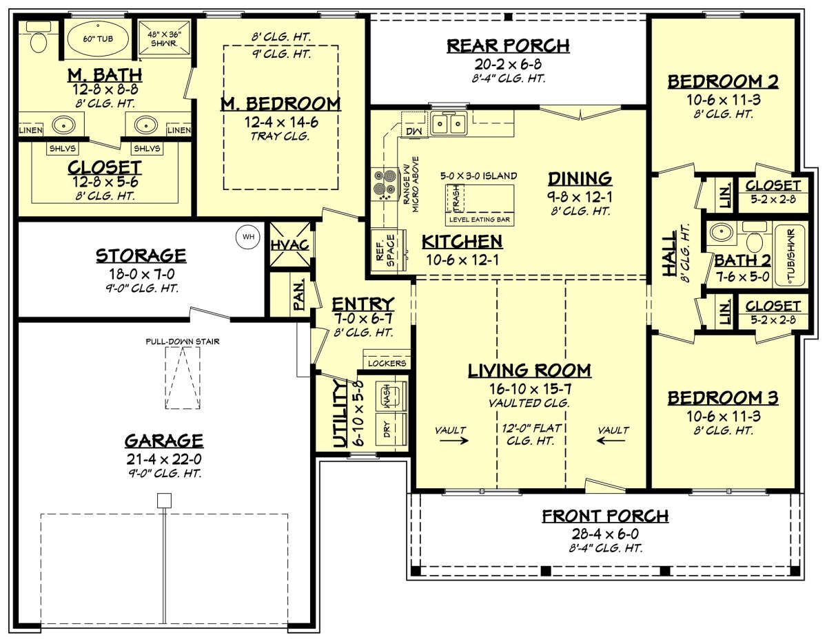 This modern farmhouse plan is perfect for families and couples who want an efficient layout without sacrificing amenities. The open main living areas feel welcoming and connected, while the split-bedroom arrangement provides privacy. The covered porches bring the outdoors into your daily lifestyle, whether you’re sipping morning coffee or hosting friends in the evening. 12
