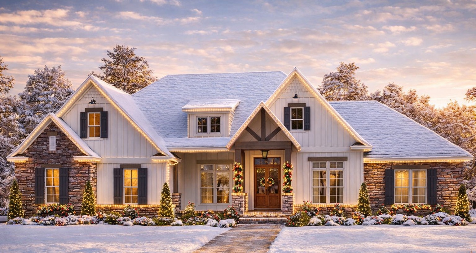 A covered front porch sets the tone immediately. It’s the perfect “hello” space—ideal for rocking chairs, porch plants, and greeting guests without everyone trying to balance at the door. The dramatic double-door entry adds a little extra presence, like the home is saying, “Yes, I’m friendly… but I also have standards.”