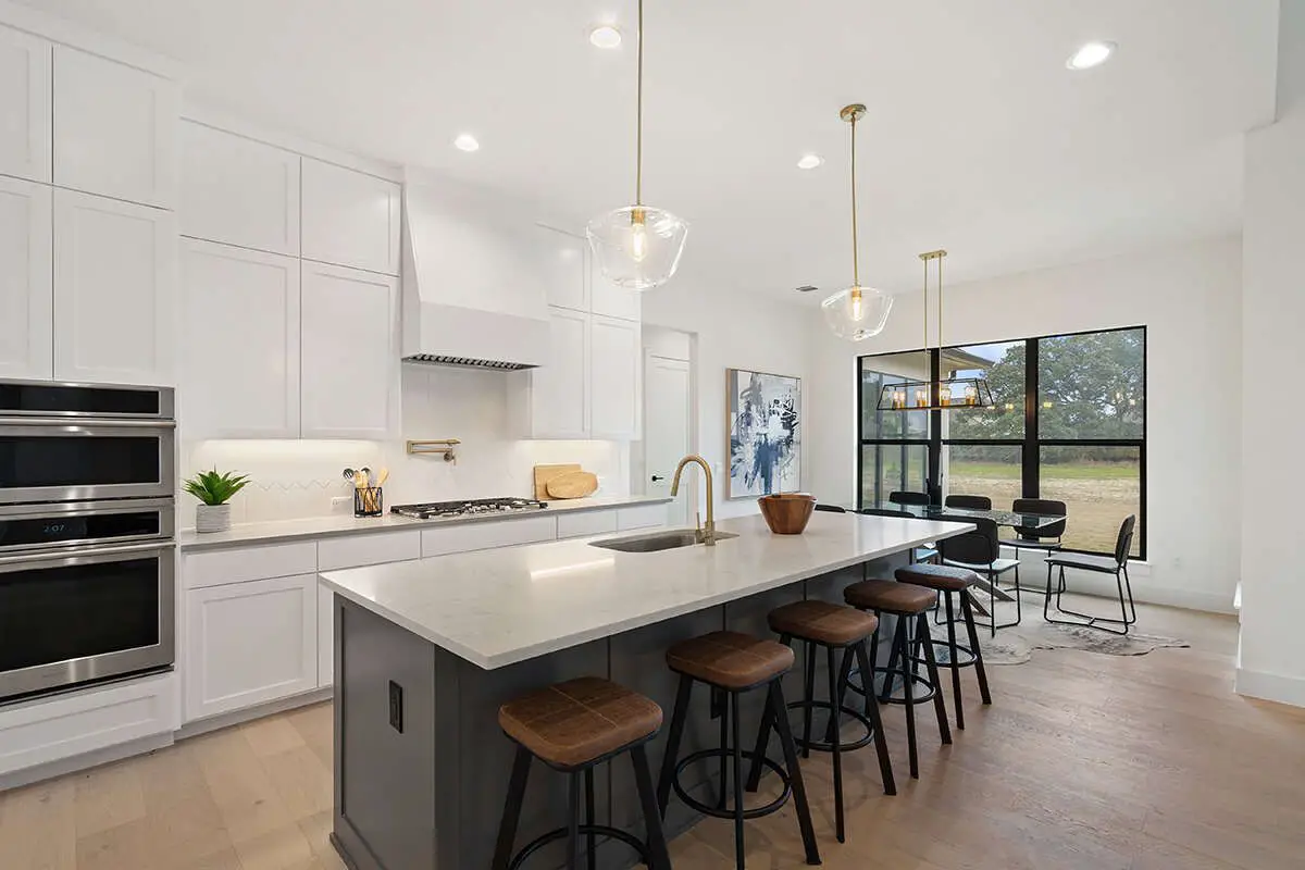 The kitchen is designed for real-life use, featuring ample prep space, a central island for casual dining and conversation, and easy access to the dining area. Layout choices keep everything connected yet easy to navigate—perfect for daily routines and holiday hosting alike.