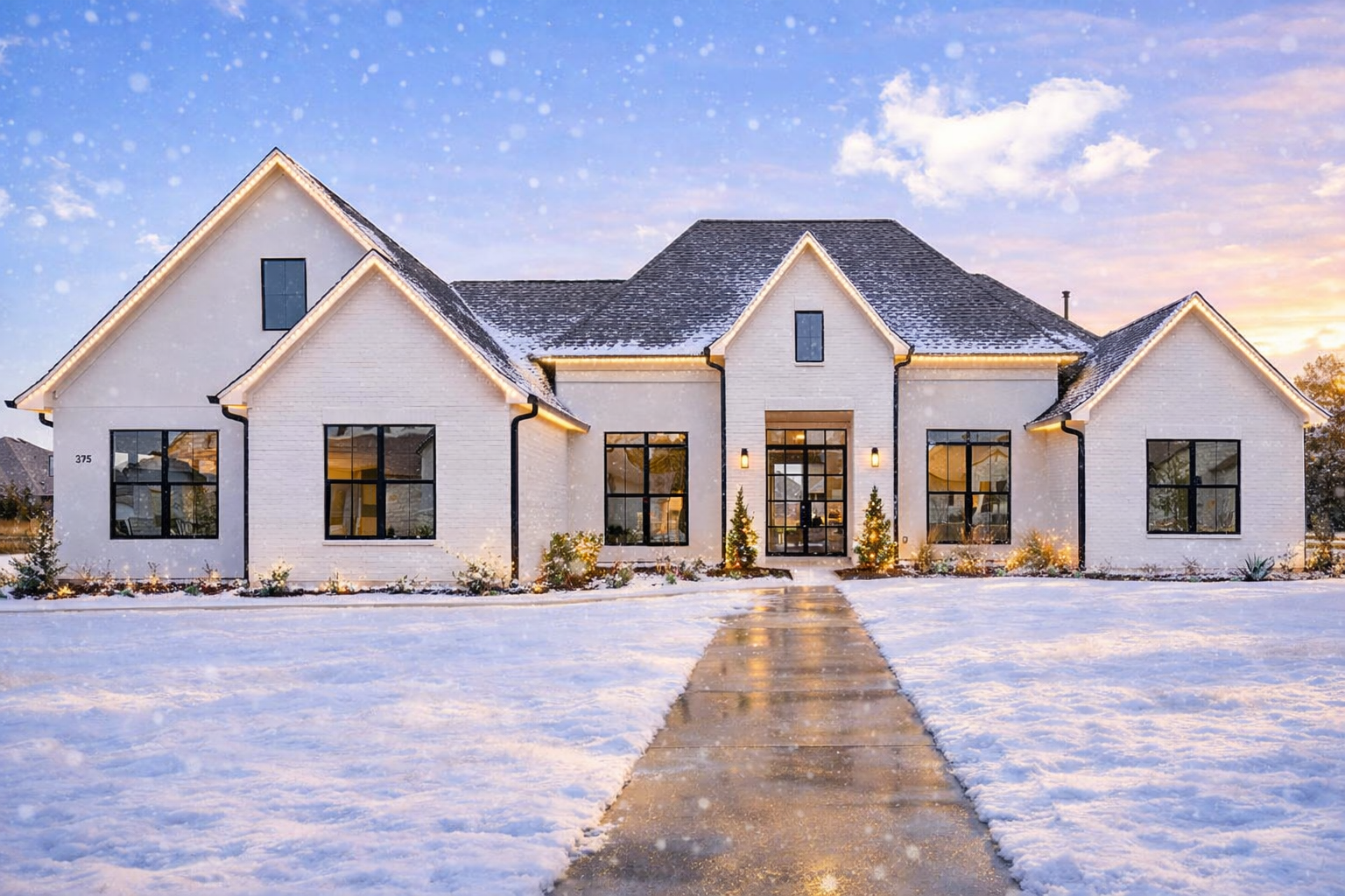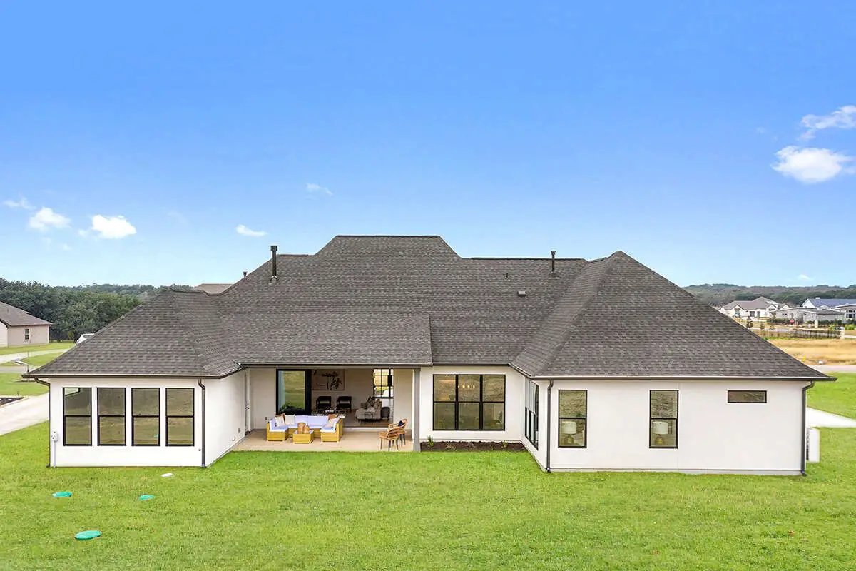 The exterior showcases classic European influences with balanced rooflines and an inviting façade that stands out without feeling overwhelming. A **3-car garage** enhances practicality while keeping the front façade clean and substantial.