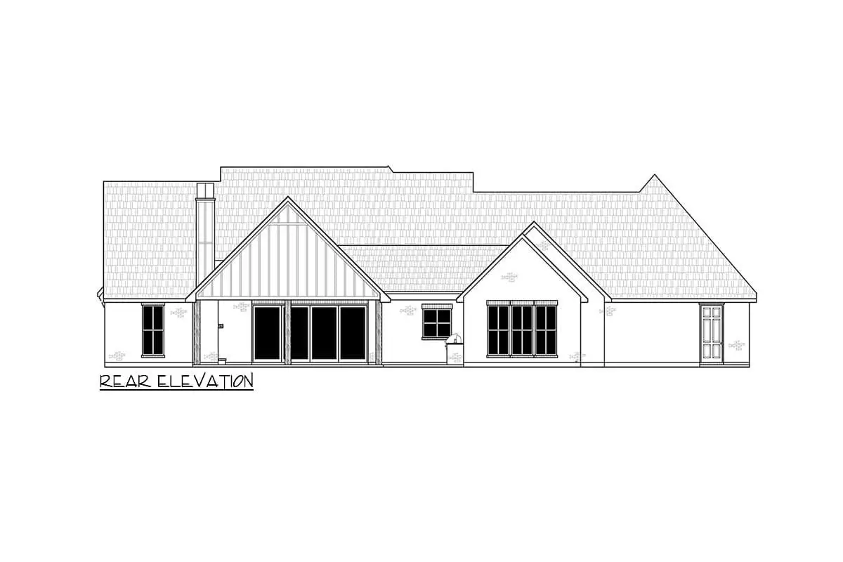 This elegant **Modern French Country house plan** combines timeless style with thoughtful function across approximately 2,674 square feet of heated living space.