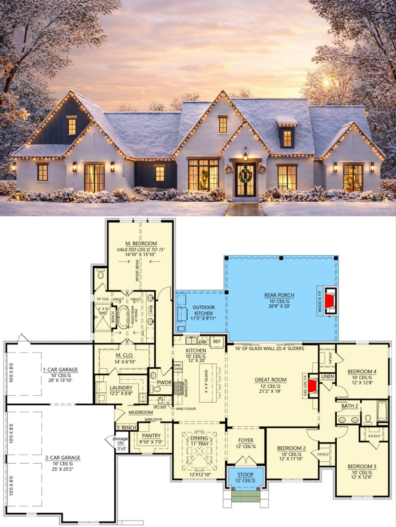 This plan blends refined design with adaptable function. The layout supports both everyday comfort and elevated entertaining. Split bedrooms boost privacy, while the outdoor kitchen and fireplace encourage extended season living. A dedicated butler pantry and wet bar simplify hosting and storage, and the practical mudroom and laundry arrangements help keep daily life organized and efficient. 17