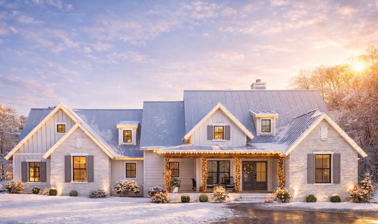 The exterior is that classic modern farmhouse blend that never gets old: board-and-batten siding for vertical texture, clapboard for clean lines, and stone accents to ground the whole look. It’s polished without feeling pretentious.