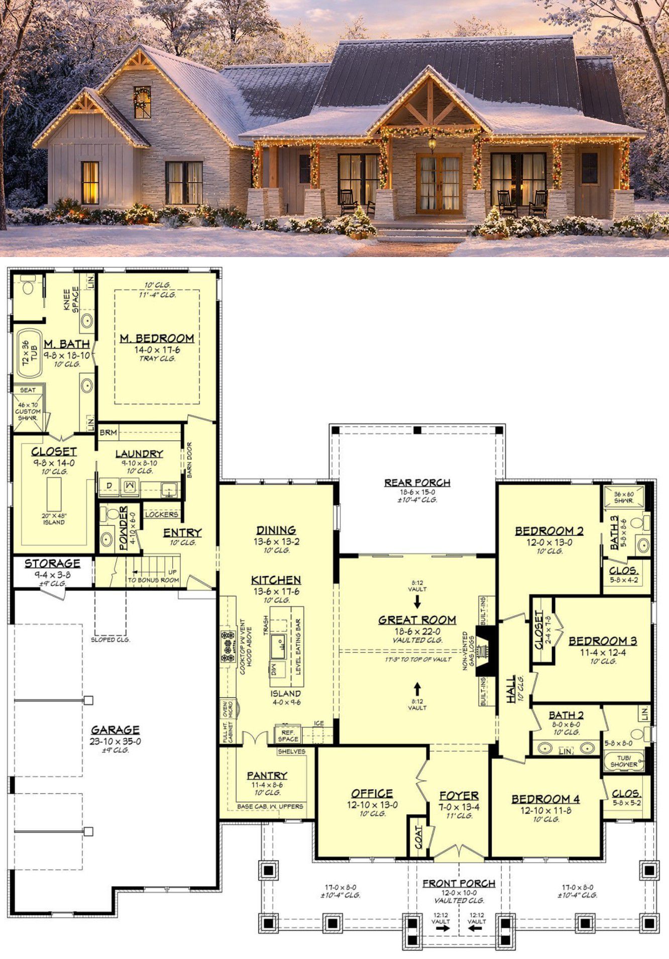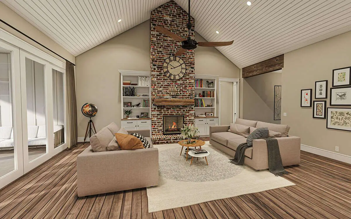 This Craftsman plan is ideal for families who want a blend of communal living and private retreats. The open main areas promote togetherness, while the bedroom layout and office space provide separation when needed. Outdoor porches encourage easy socializing and quiet moments alike. 26