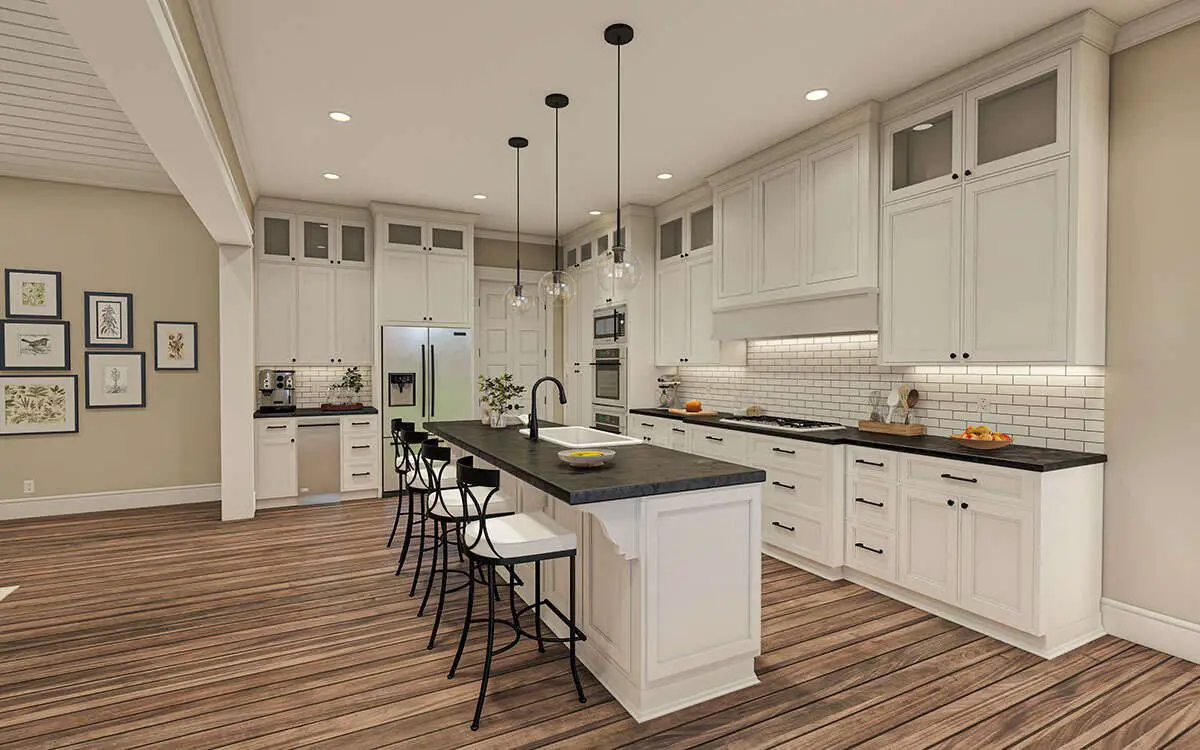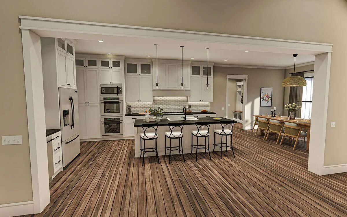 The kitchen is designed for real-life use, with a large island that offers prep space, casual seating, and a focal point for gatherings. Ample counter space and storage make everyday meals and holiday spreads equally comfortable. 5