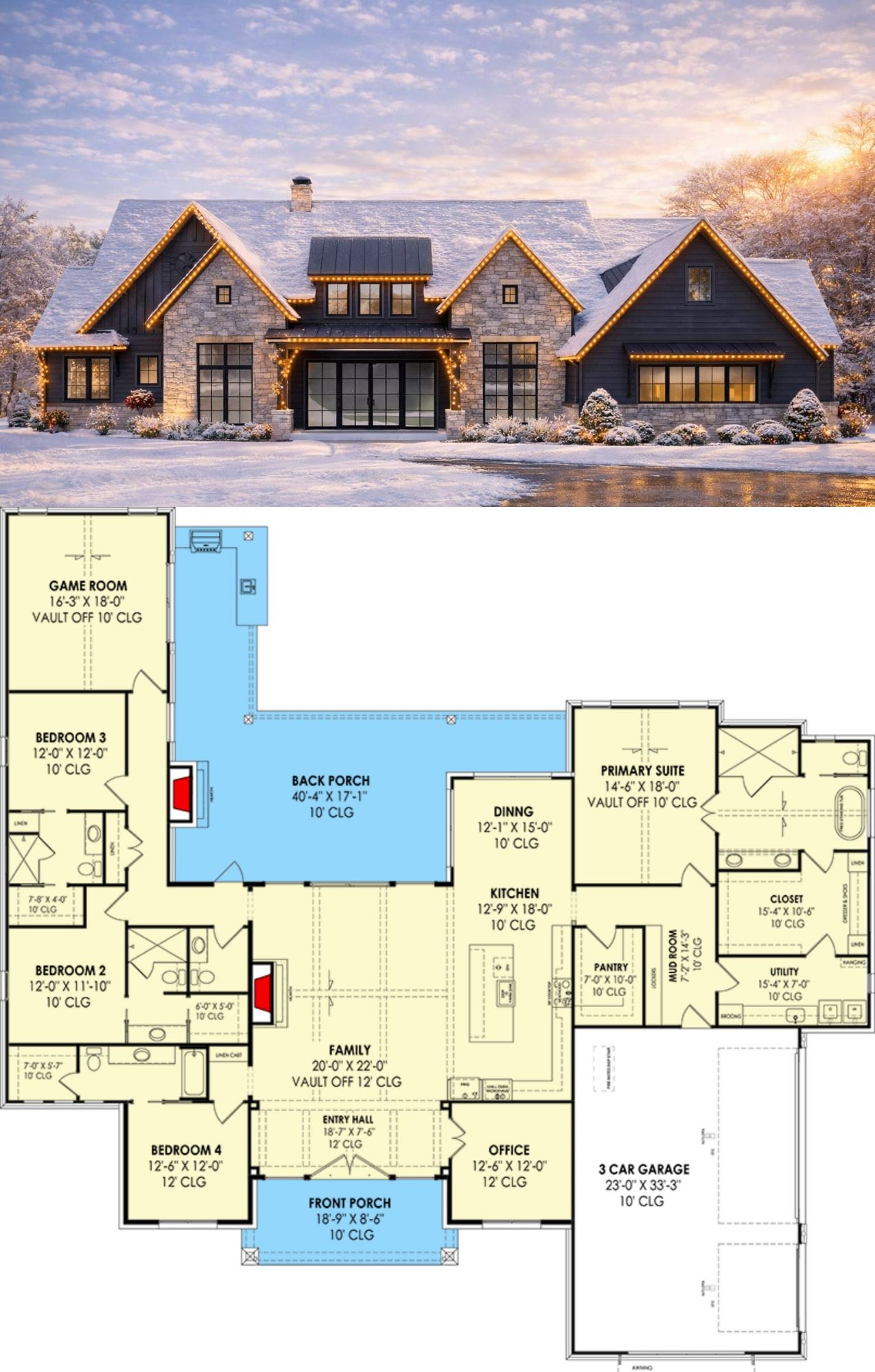 This layout nails the balance between togetherness and privacy. The open core makes the home feel connected and social, while the bedroom wing and primary suite give everyone space to recharge.