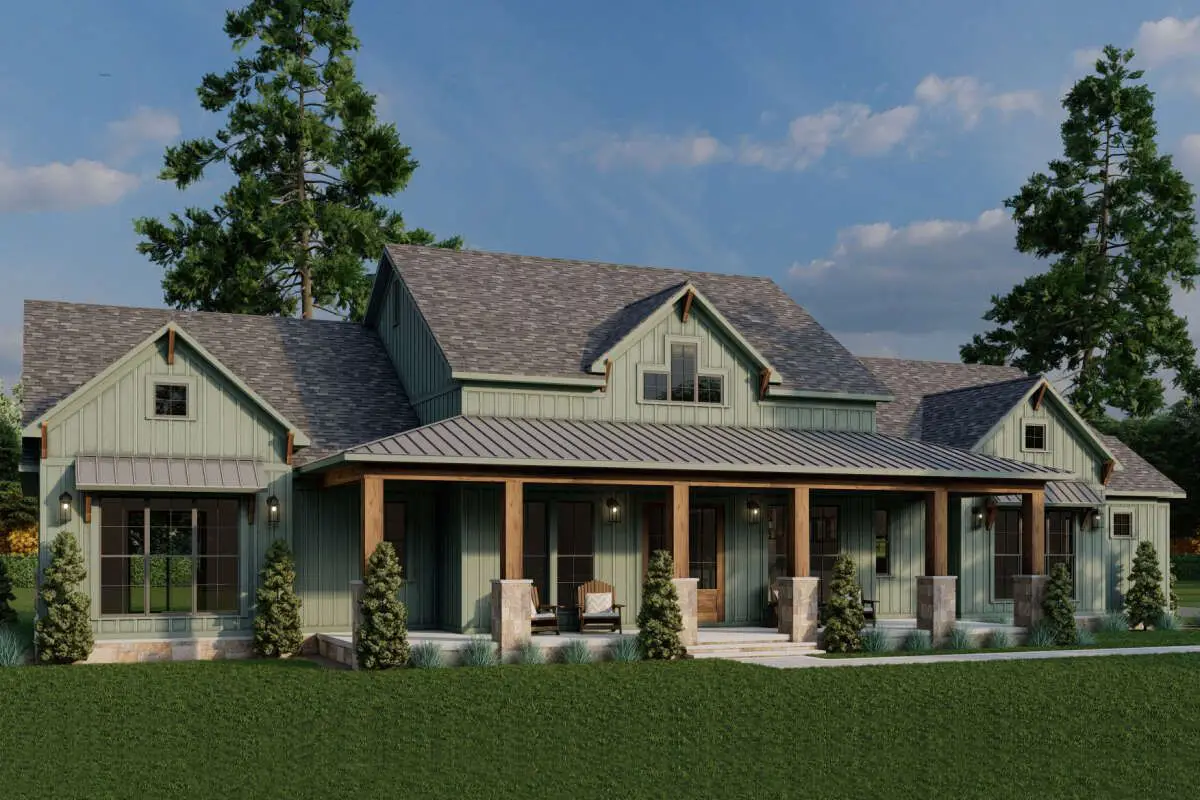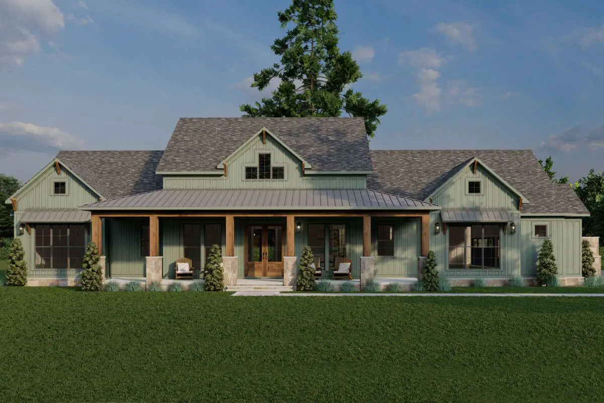Overall, this one-story modern farmhouse brings together the best kind of balance: open living where you gather, private bedrooms where you rest, and smart spaces—office, studio, mud room, big porches—that make the day-to-day feel easier and more enjoyable.