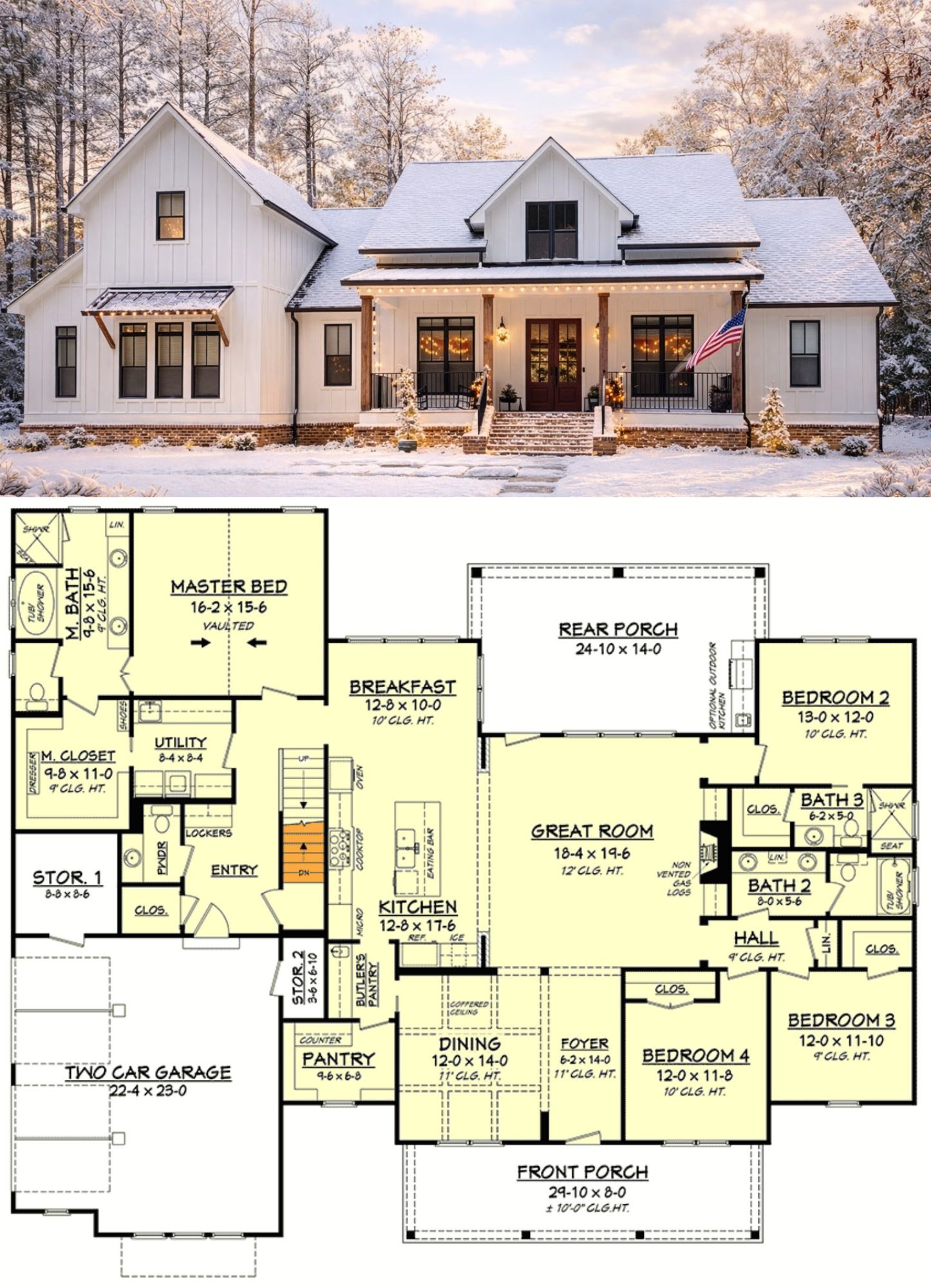 If you’ve ever wanted a home that feels “Sunday-morning cozy” on the outside and “wow, this flows perfectly” on the inside, this modern farmhouse layout hits that sweet spot.