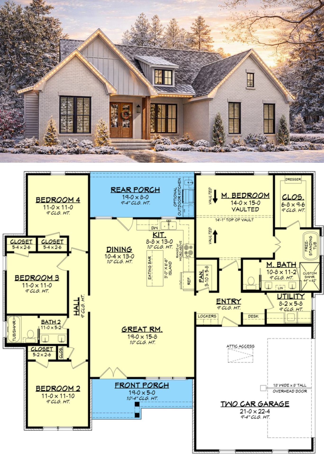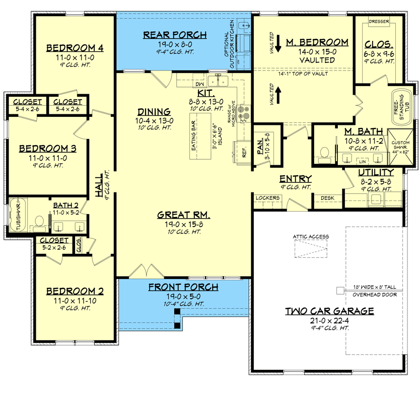 - Ceiling height: ~9′ main floor with vaulted master suite