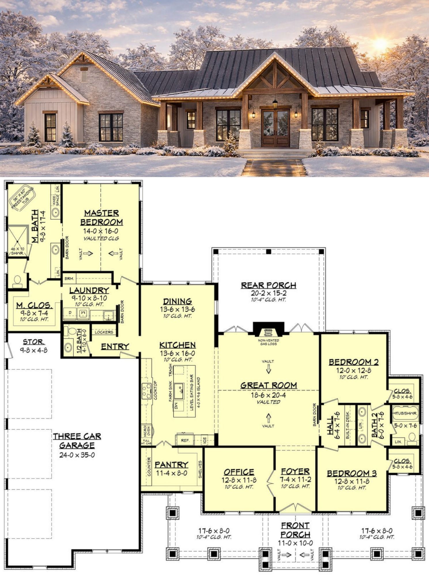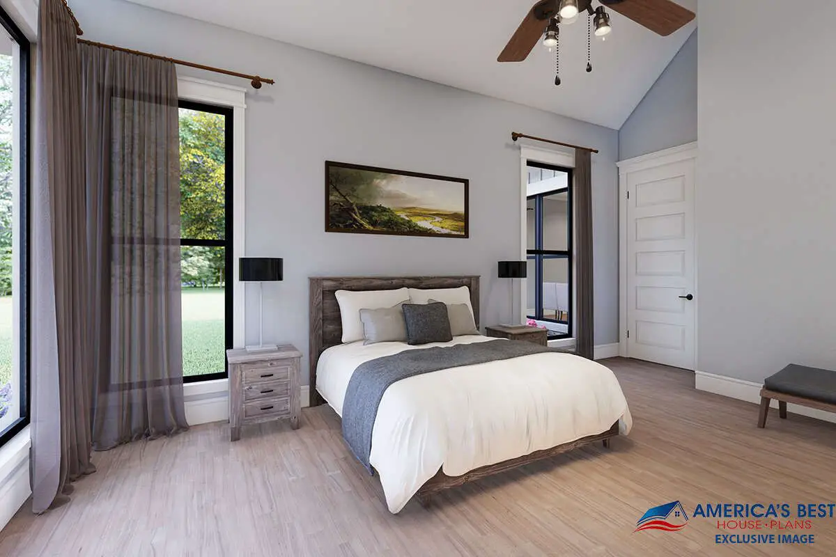 This modern farmhouse plan provides striking curb appeal, well-balanced indoor space, and thoughtful planning that supports both everyday life and entertaining. With generous storage, an open layout, and flexible bedroom zones, it’s ideal for families, guests, and long-term comfort. 23
