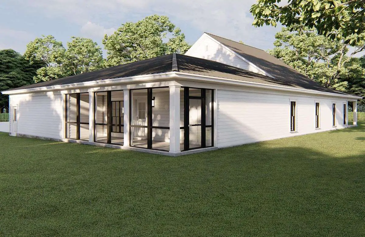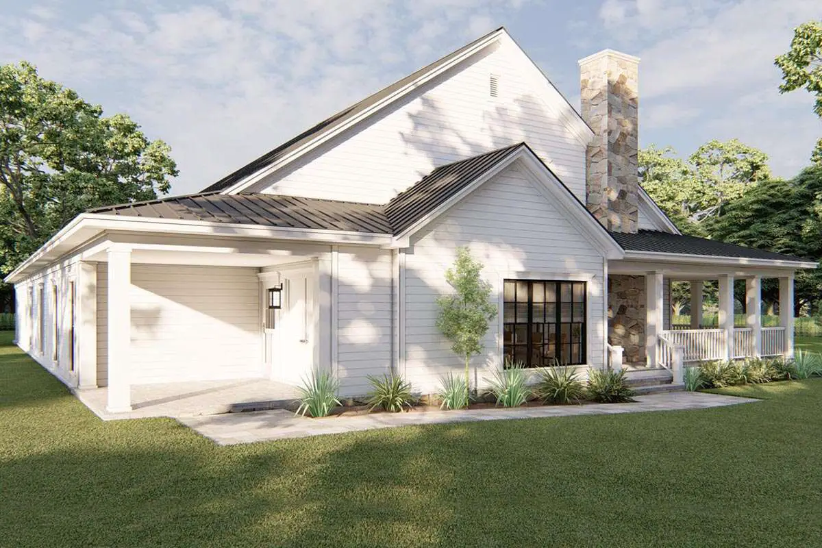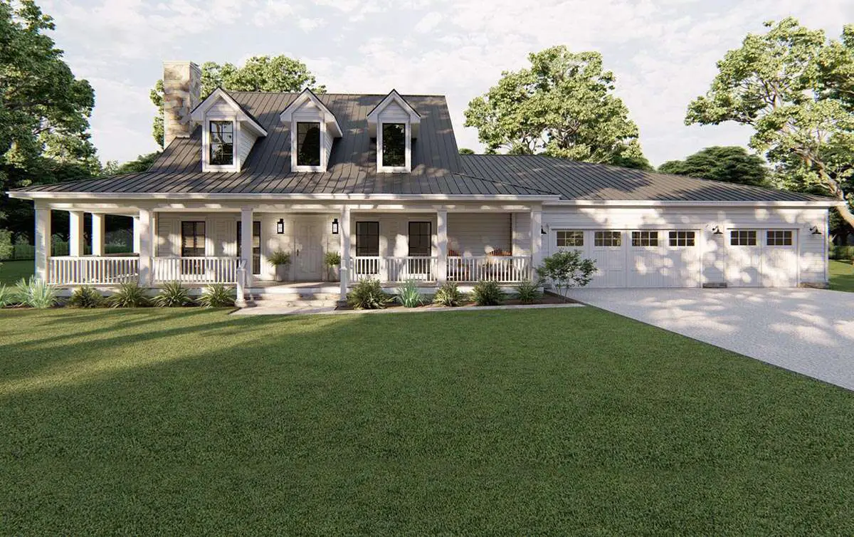 This farmhouse look leans into classic comfort with a practical, modern edge. The roof has a noticeable pitch that gives the home a bold silhouette, and the overall height keeps it feeling substantial without tipping into “too much house.” It’s the kind of exterior that works beautifully with crisp light siding, warm wood accents, dark windows, or even a slightly moodier palette if you like a farmhouse that’s more “modern” than “country.”