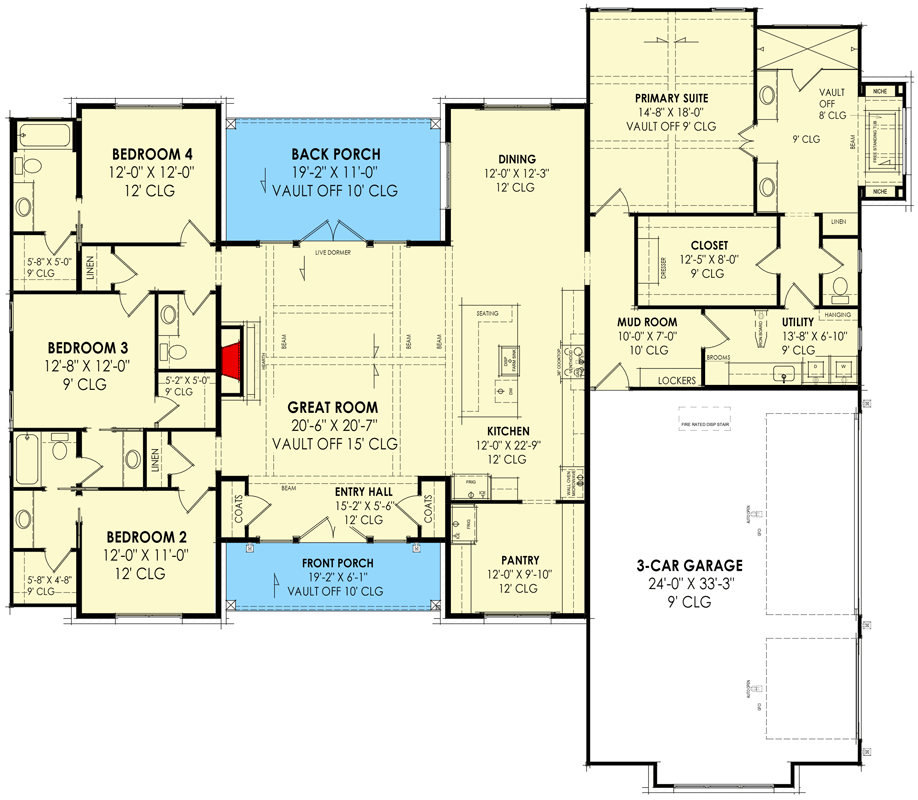 - Primary Roof Pitch: 14:12 with secondary 12:12