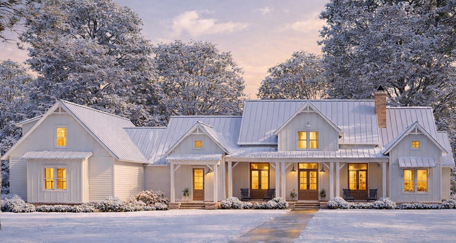 A reasonable estimated U.S. build cost for a modern farmhouse of this scale and quality generally falls in the range of $750,000 to $1,135,000 USD, depending on your region, materials, finishes, roof complexity, and site conditions. High-end finishes, outdoor kitchen additions, or fully finished bonus spaces may push the cost toward the upper end. Land, permits, site work, utilities, landscaping, and driveways are typically additional expenses beyond the core build.17